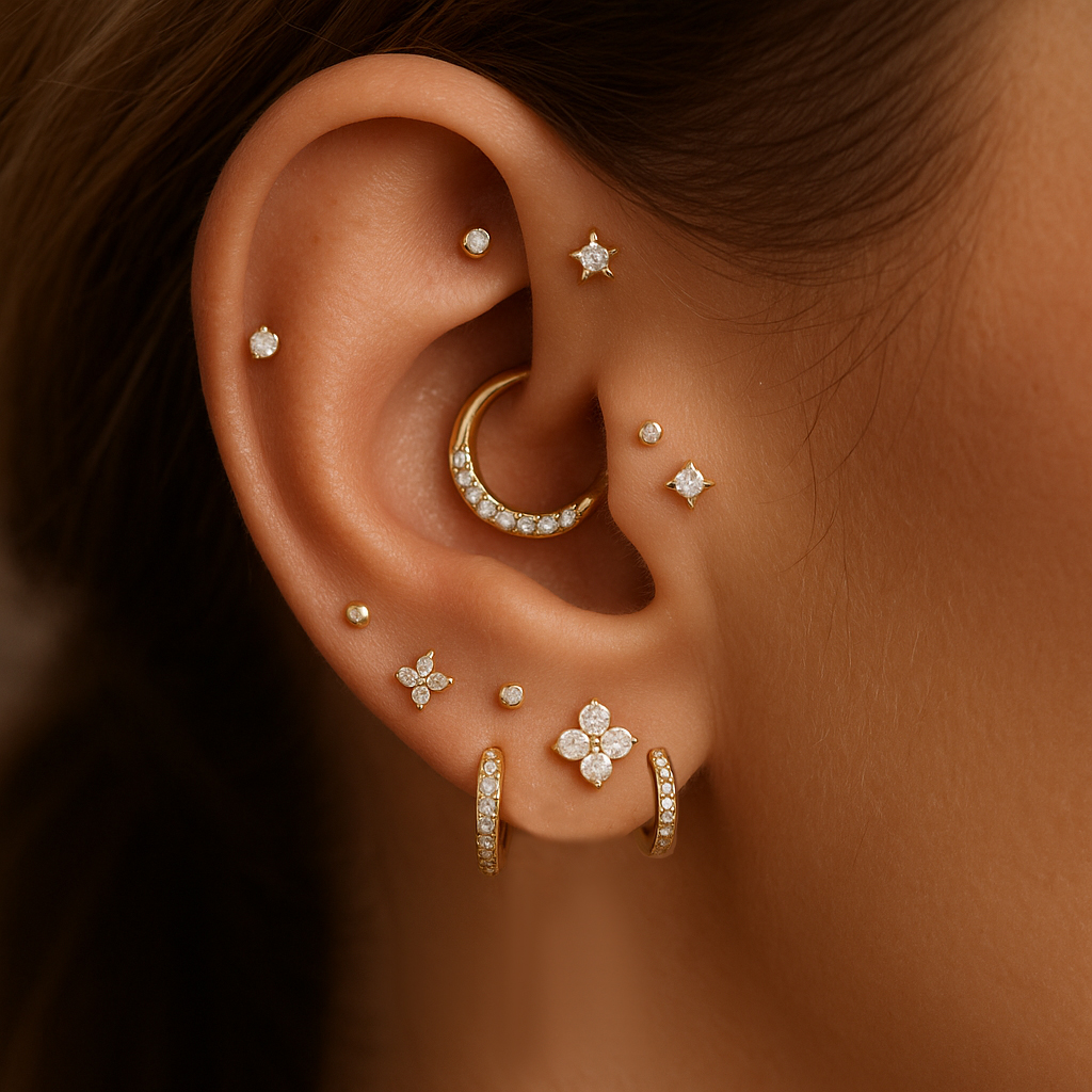פירסר מנוסה ומקצועי, תוך הקפדה על מיקום אסתטי ומדויק בהתאם לקונספט העיצובי