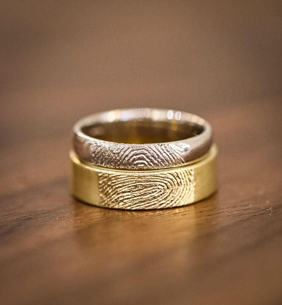 entirely by hand. The fingerprint is seamlessly engraved or embedded into the jewel.