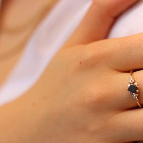 טבעת זהב עם יהלומים שחורים בחיתוכים מיוחדים