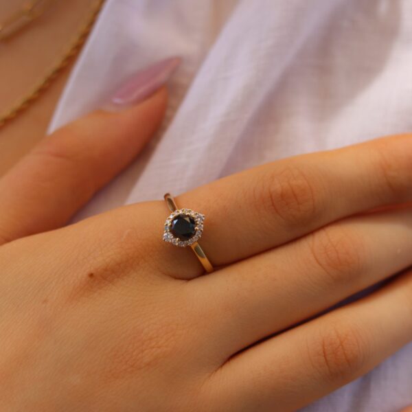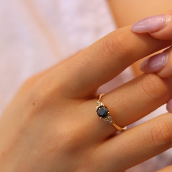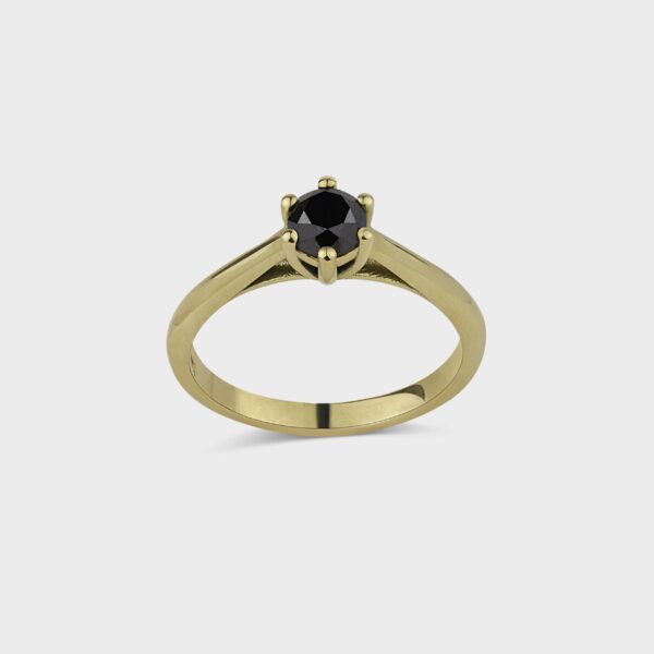 טבעת זהב קלאסית משובצת יהלומים שחורים