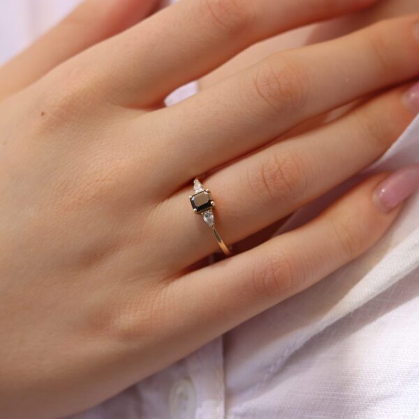 טבעת יהלום שחור מלבני ויהלומים טיפות