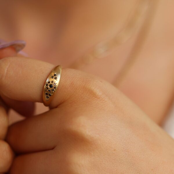 טבעת בשיבוץ אסימטרי של יהלומים שחורים