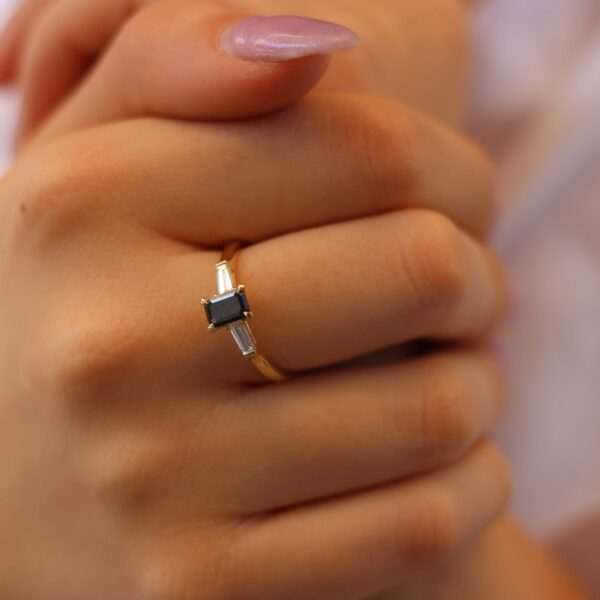 טבעת זהב 14K משובצת יהלומים מלבניים