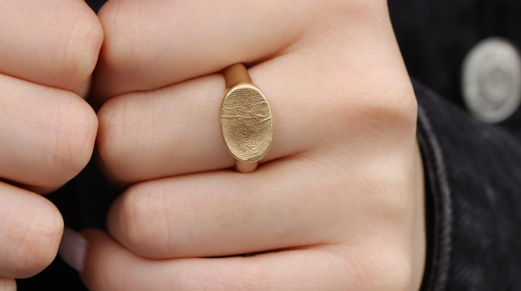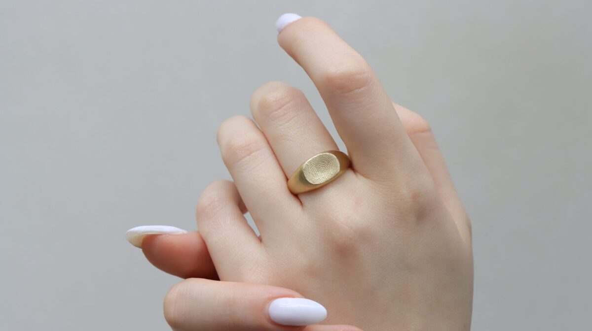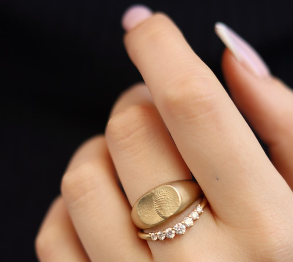 טבעת מרגשת ואישית עם טביעות אצבע של אהוביך בזהב 14k. טביעת האצבע תוטבע בטבעת בעבודת יד בטכניקה ייחודית. אנא התקשרו אלינו לתיאום החוויה המשותפת שלנו בסטודיו.