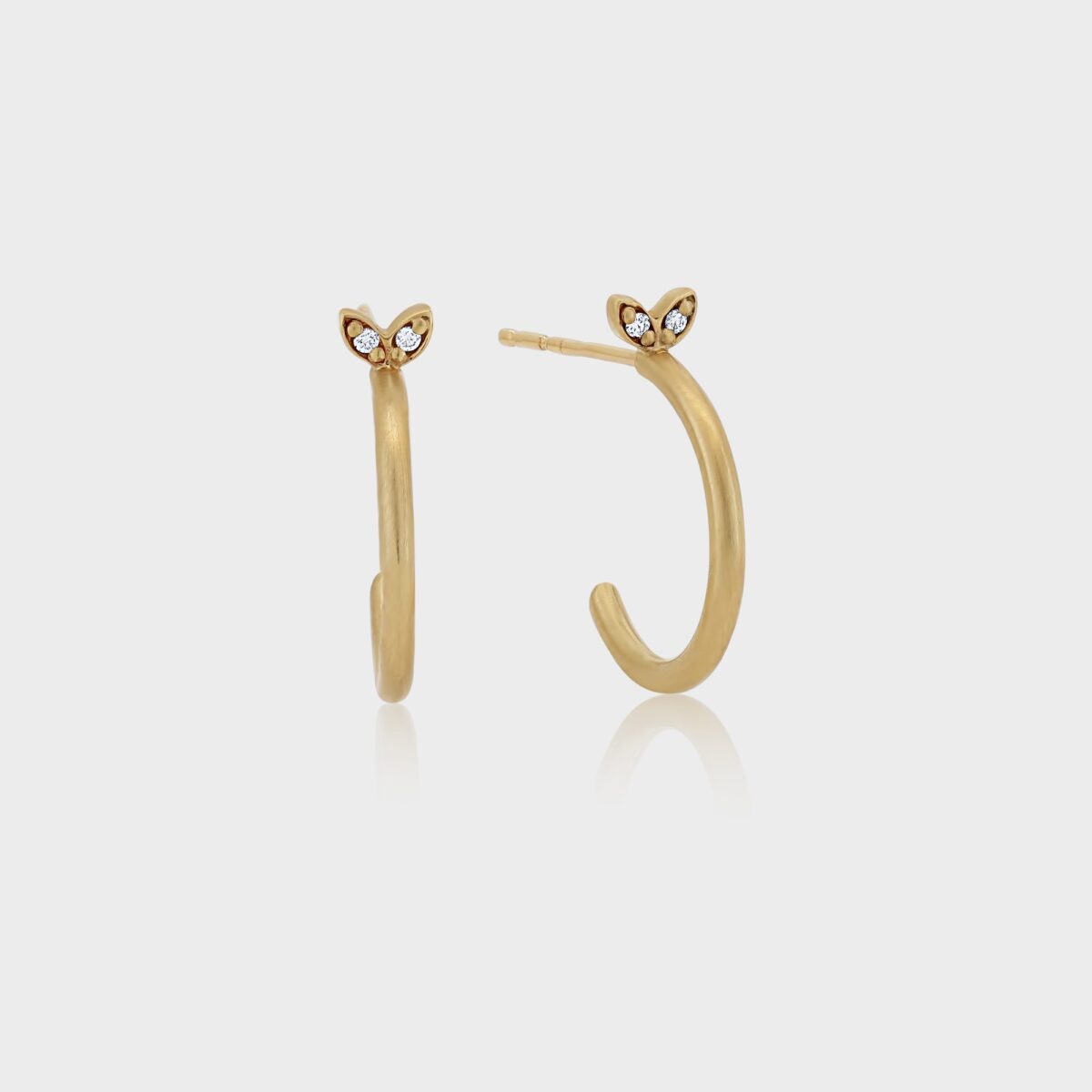 חישוקי אוזניים זהב 14 קרט משובצים 4 יהלומים לבנים אשר נותנים לעגילים טוויסט ייחודי ויפיפה