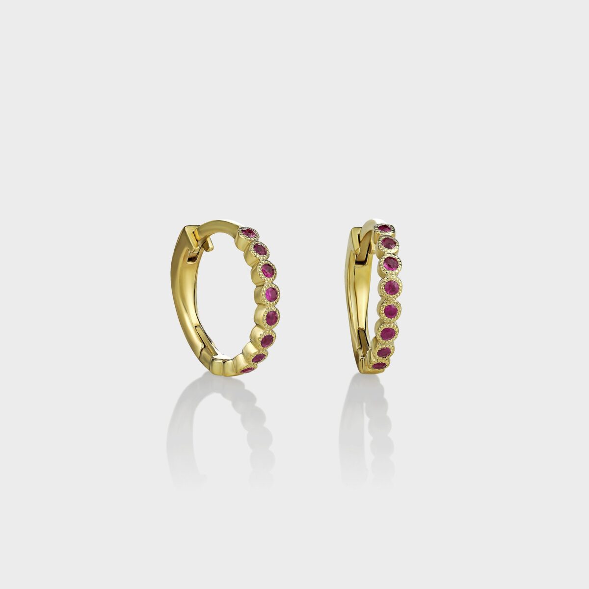חישוקי זהב 14k יפיפיים משובצים 16 אבני חן רובי באיכות מעולה. לוק סקסי משגע.