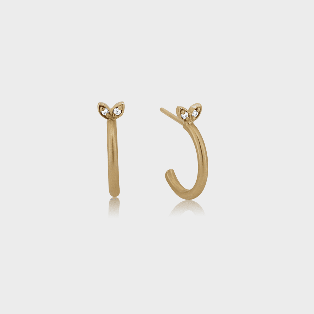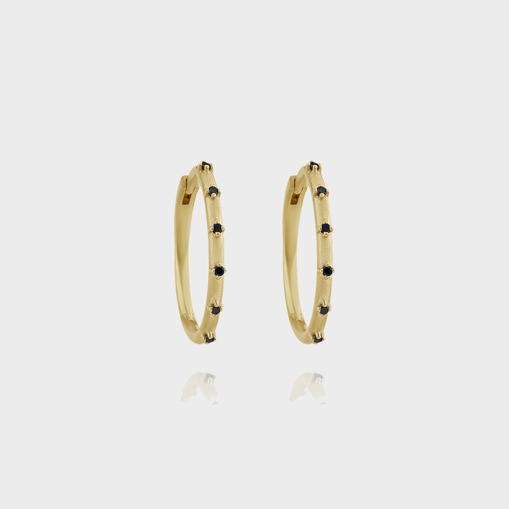 חישוקי זהב 14 קרט משובצים ב2 יהלומים שחורים. עגילים יחודיים ומהפנטים.