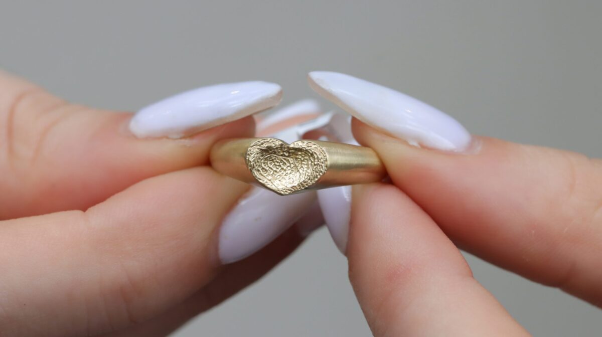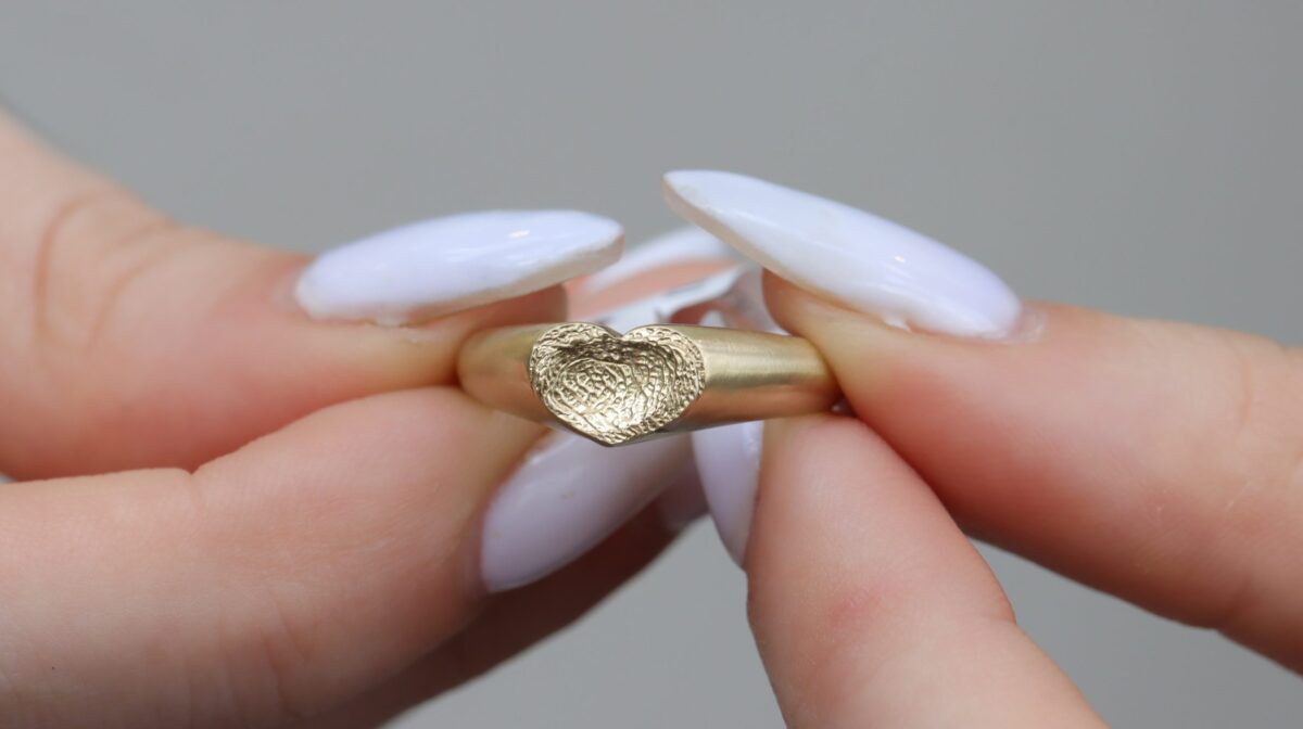 טבעת מעוצבת בזהב 14 קרט, עם טביעת אף של כלב או טביעת אצבע של אדם קרוב המוטבעת עליה. התכשיט מסמל קשר אישי וייחודי, ומביא עיצוב רגשי שמחבר בין רגעים חשובים. הטבעת משדרגת את המראה עם נגיעה של יוקרה וסטייל, והזהב 14 קרט מוסיף לה זוהר ואלגנטיות.