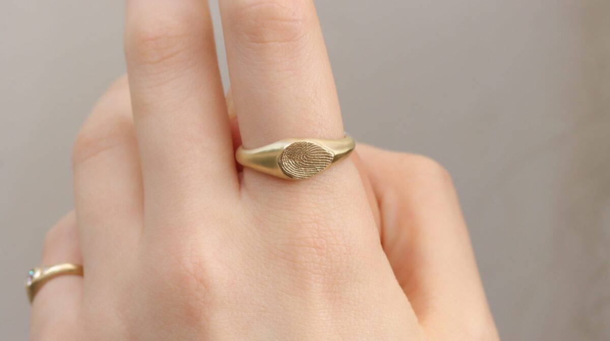 טבעת מרגשת ואישית עם טביעות אצבע של אהוביך בזהב 14k. טביעת האצבע תוטבע בטבעת בעבודת יד בטכניקה ייחודית. אנא התקשרו אלינו לתיאום החוויה המשותפת שלנו בסטודיו.