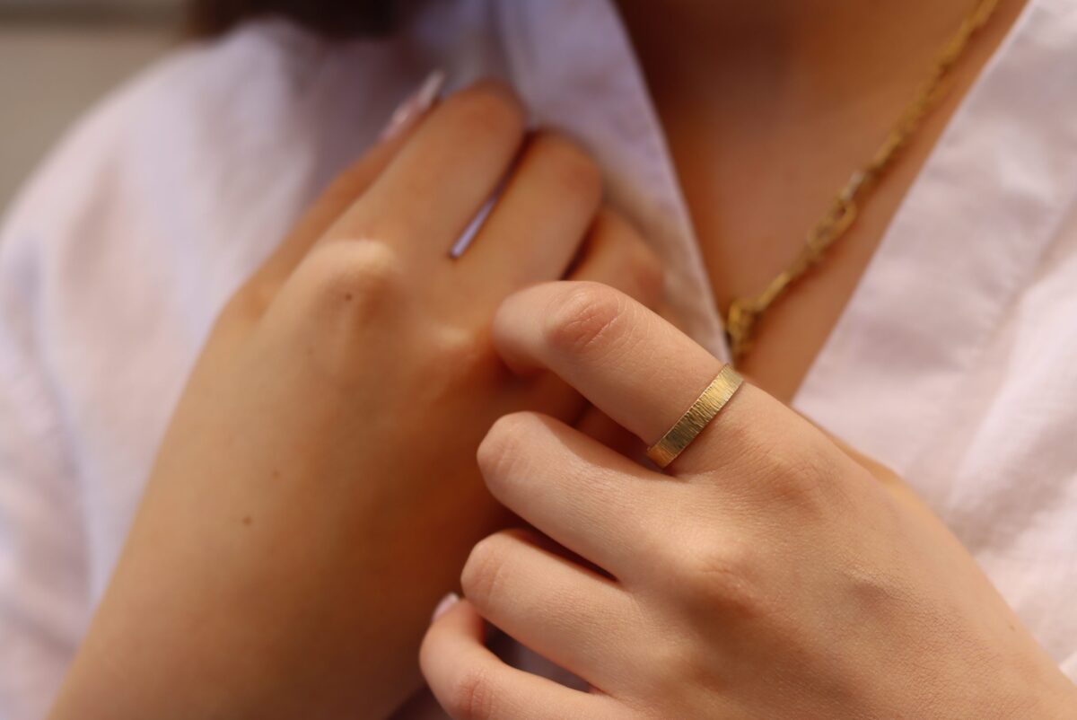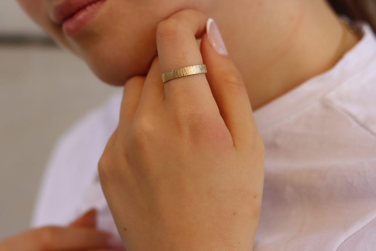 טבעת נישואין מיוחדת מזהב 14k. טקסטורה ייחודית עם המון אופי. יוניסקס מתאימה גם לאישה וגם לגבר.
