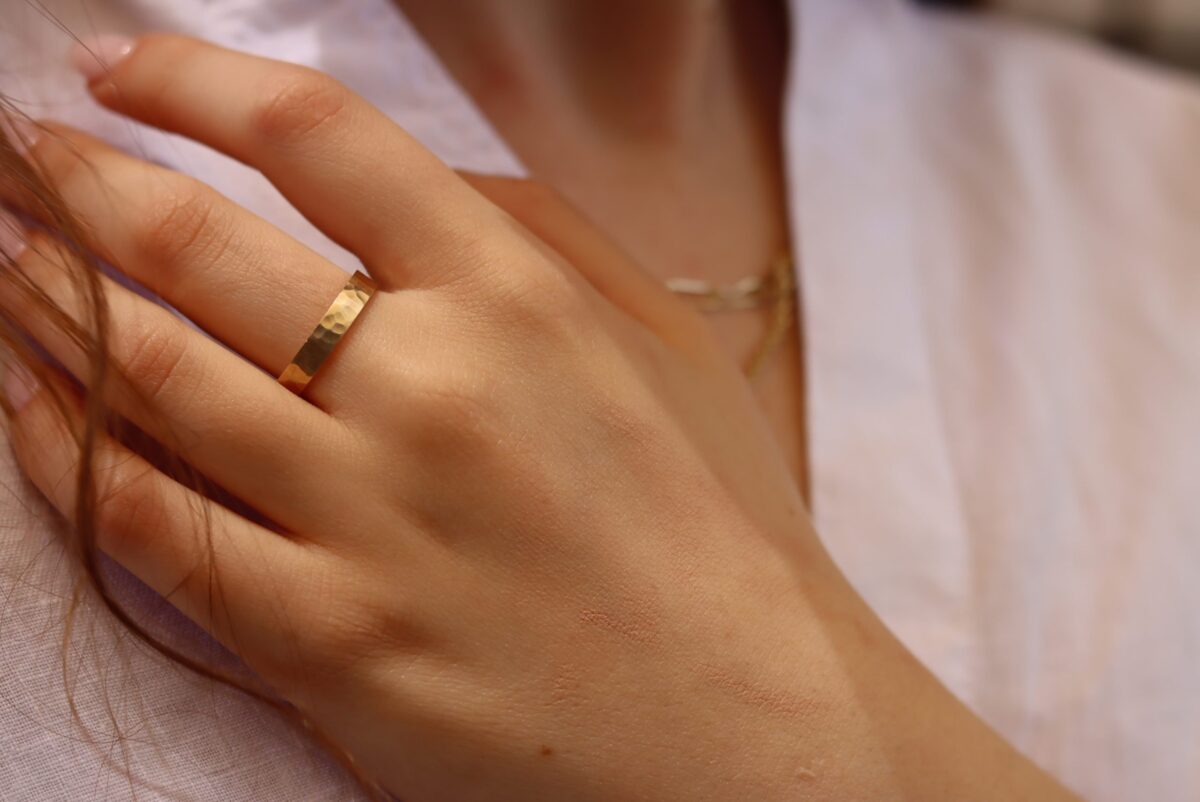 טבעת נישואין מיוחדת מזהב 14k. טקסטורה מרוקעת ייחודית מנצנצת עם המון אופי. יוניסקס מתאימה גם לאישה וגם לגבר.