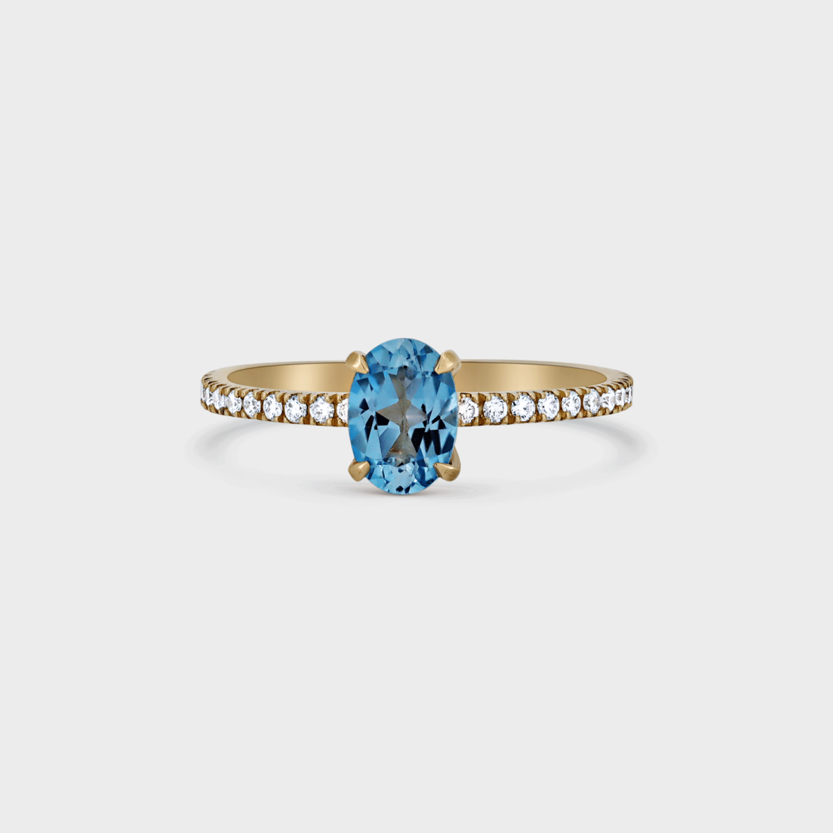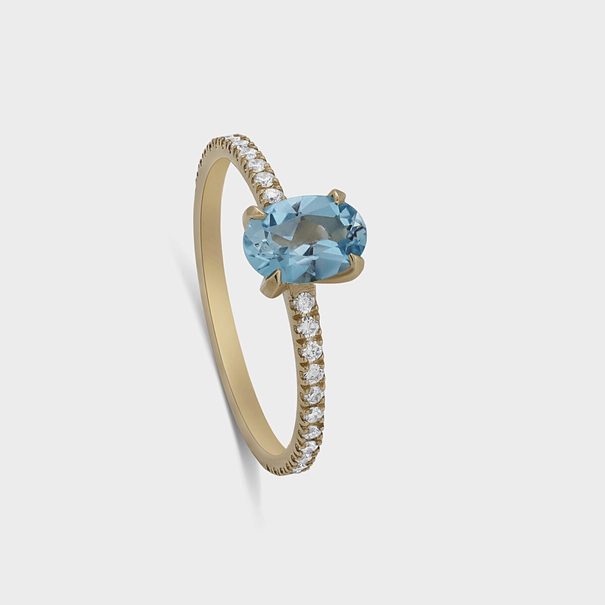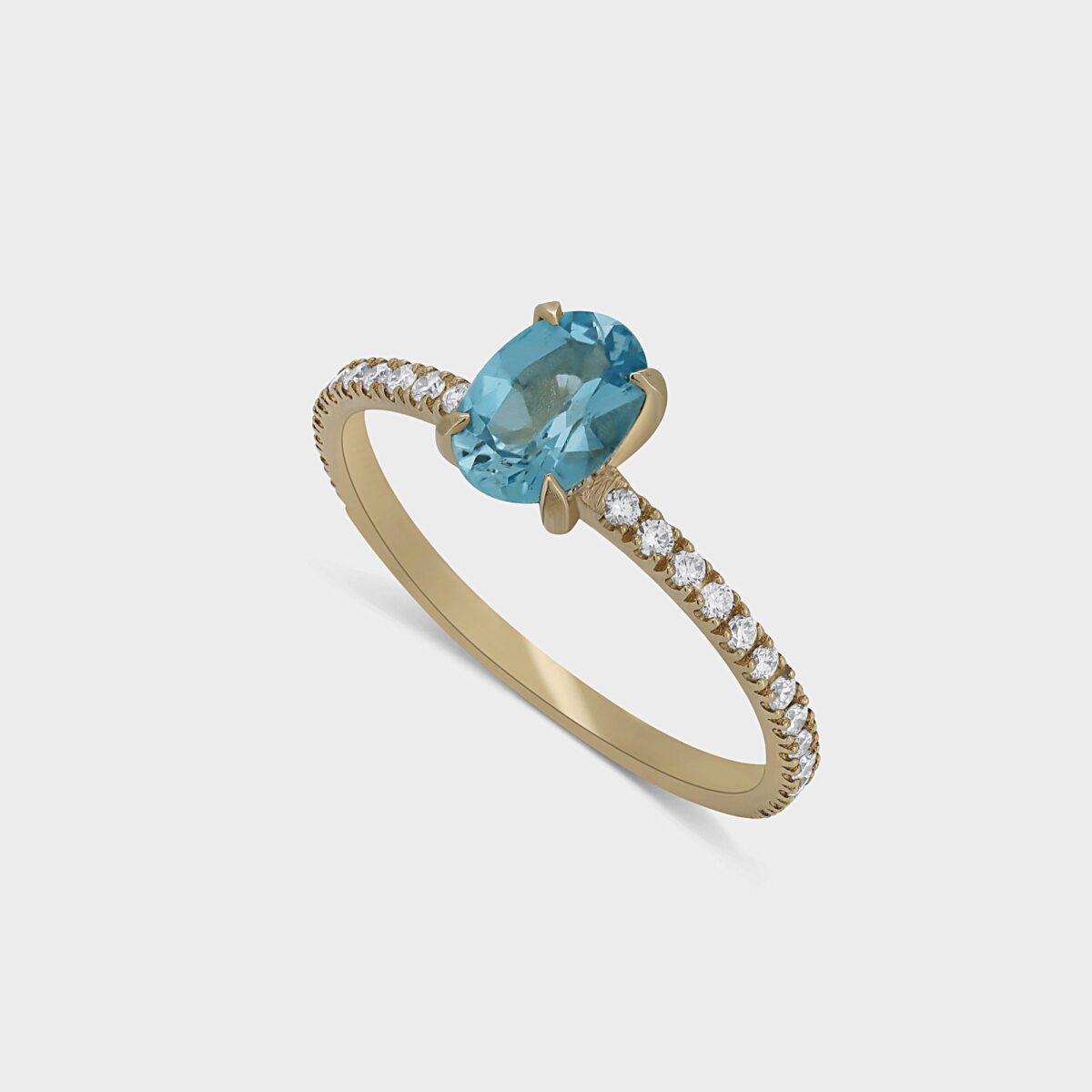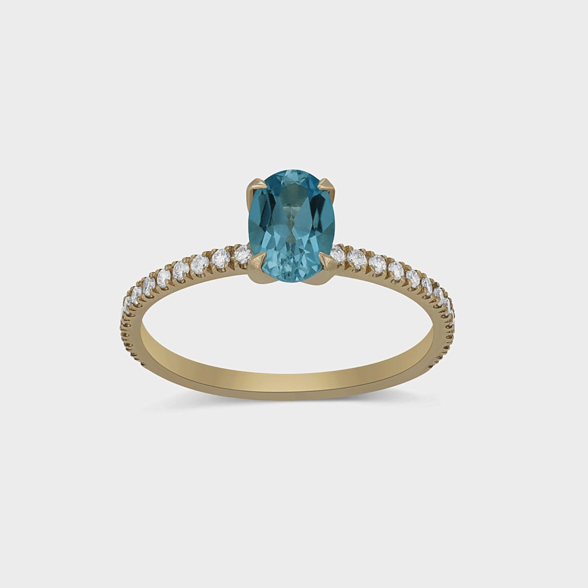 טבעת עוצרת נשימה, מעוצבת עד לפרט הכי קטן. בעיצוב קלאסי כשבמרכז אבן חן אפטייט כחלחלה במשקל חצי קרט ומצדדיה 30 יהלומים לניצנוץ מדוייק.