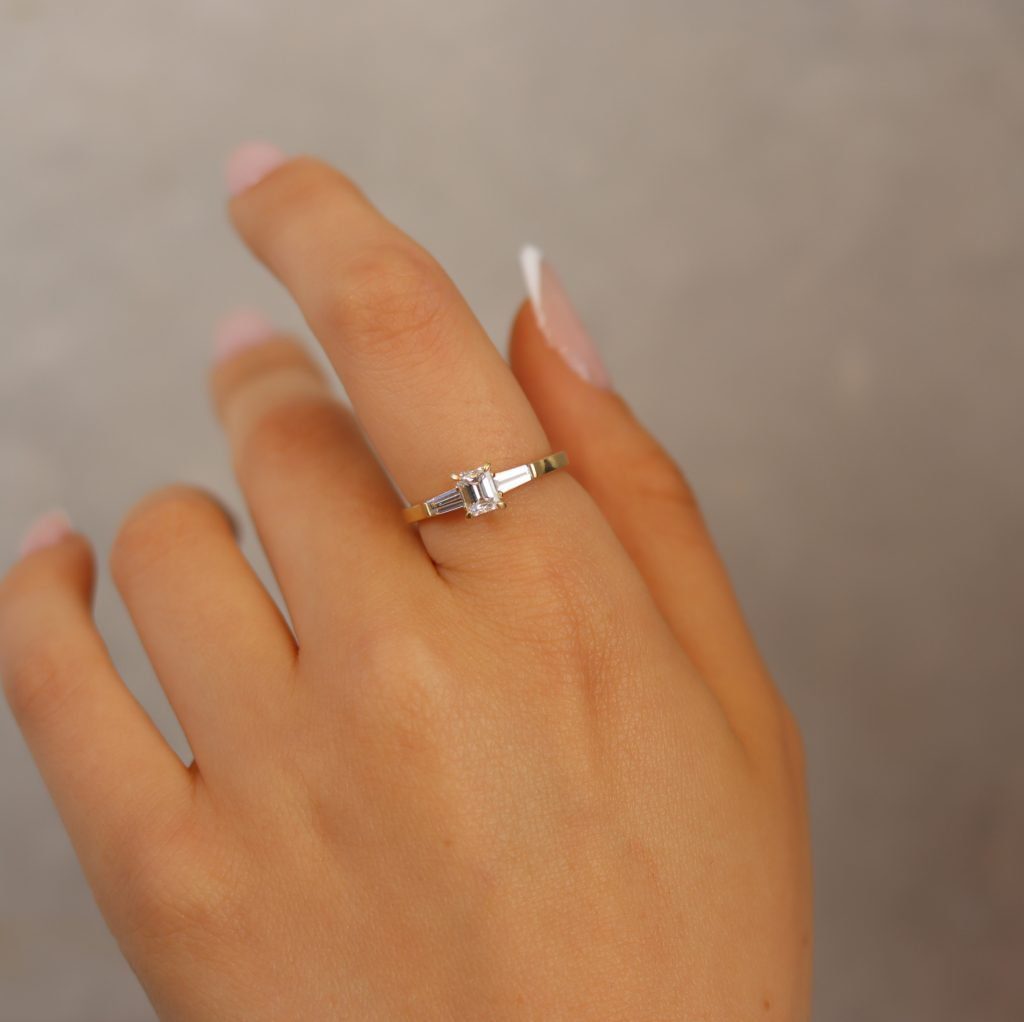 טבעת אירוסין יהלומים מלבניים