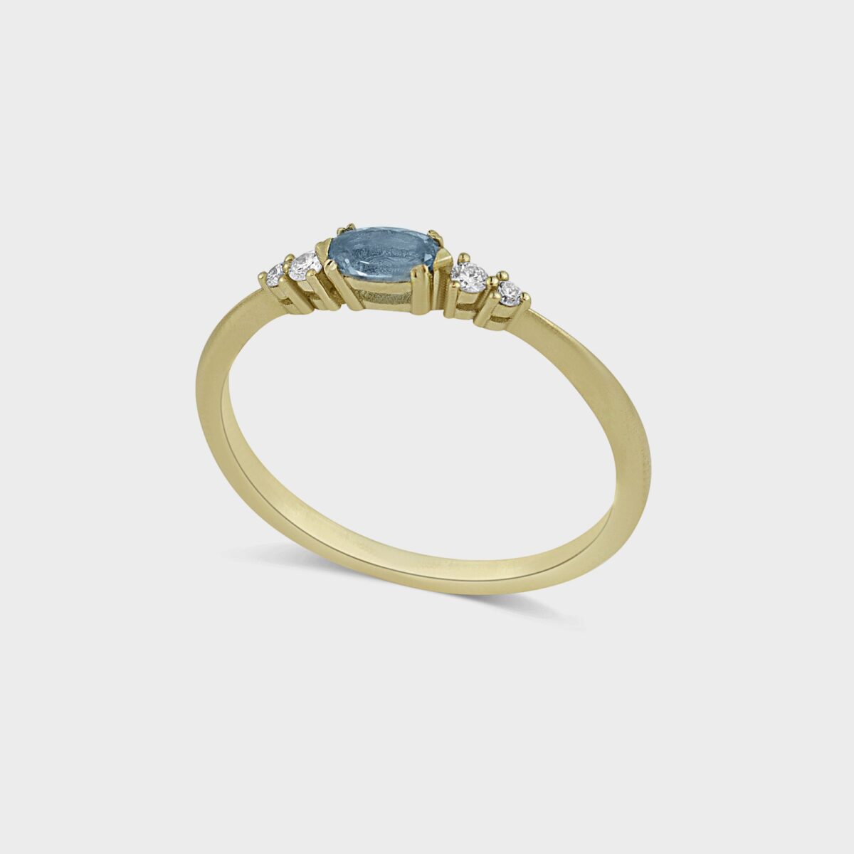טבעת מיוחדת המשלבת אבן אקווהמרין אובלית ויהלומים. טבעת מאוד עדינה ייחודית ומדוייקת. עשויה זהב 14K.