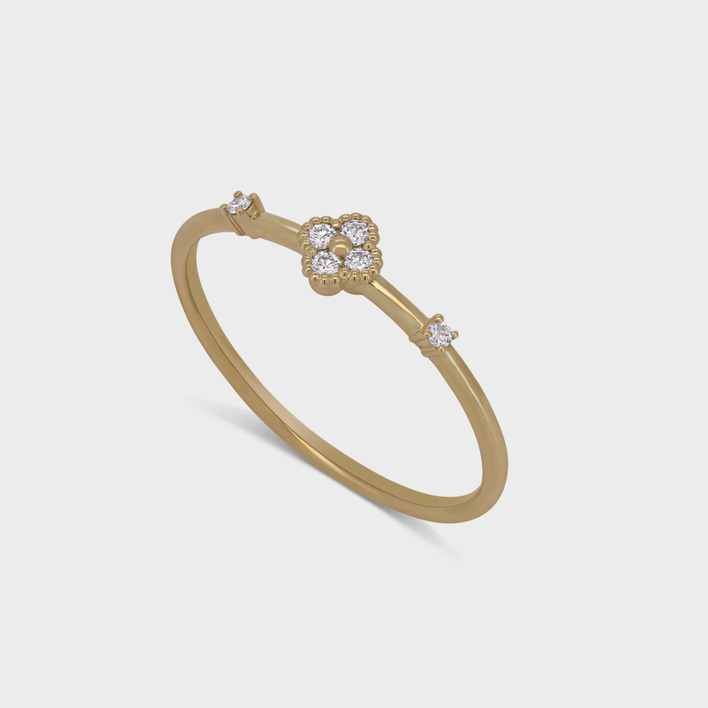 טבעת זהב תלתן יהלומים