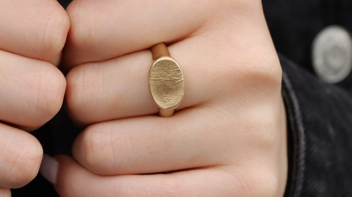 טבעת זהב אליפסה טביעת אצבע