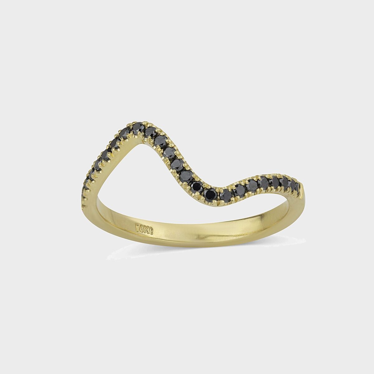 טבעת זהב 14 אסימטרית מדהימה ביופייה משובצת 24 יהלומים שחורים, עדינה אך מלאת נוכחות