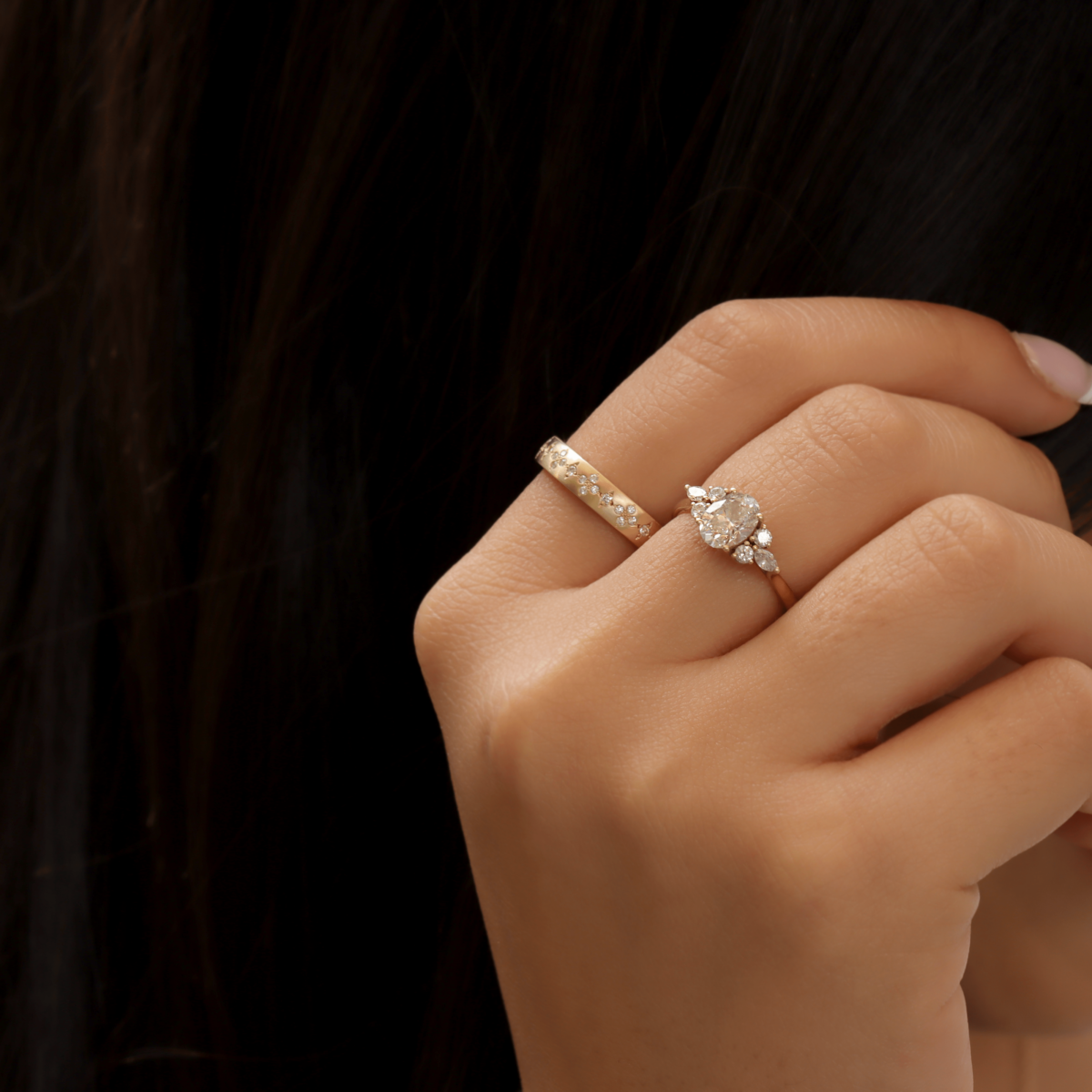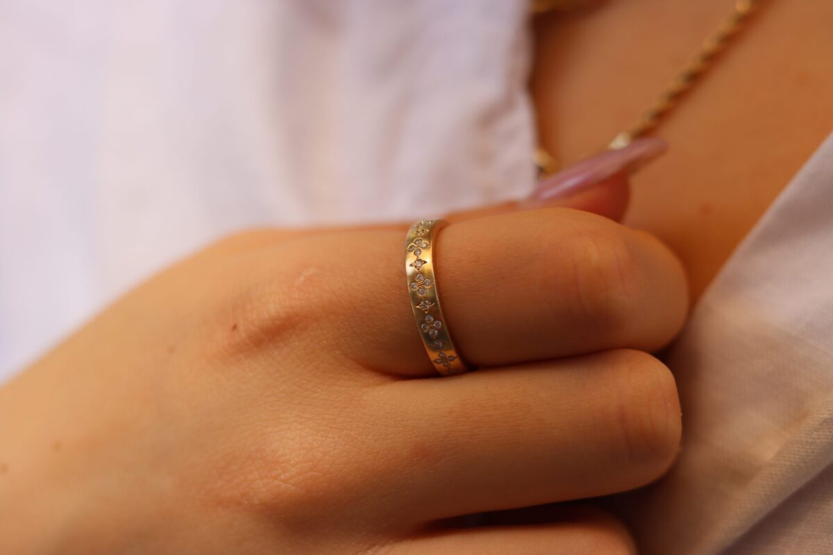 טבעת זהב 18K בשיבוץ מדוייק ומיוחד