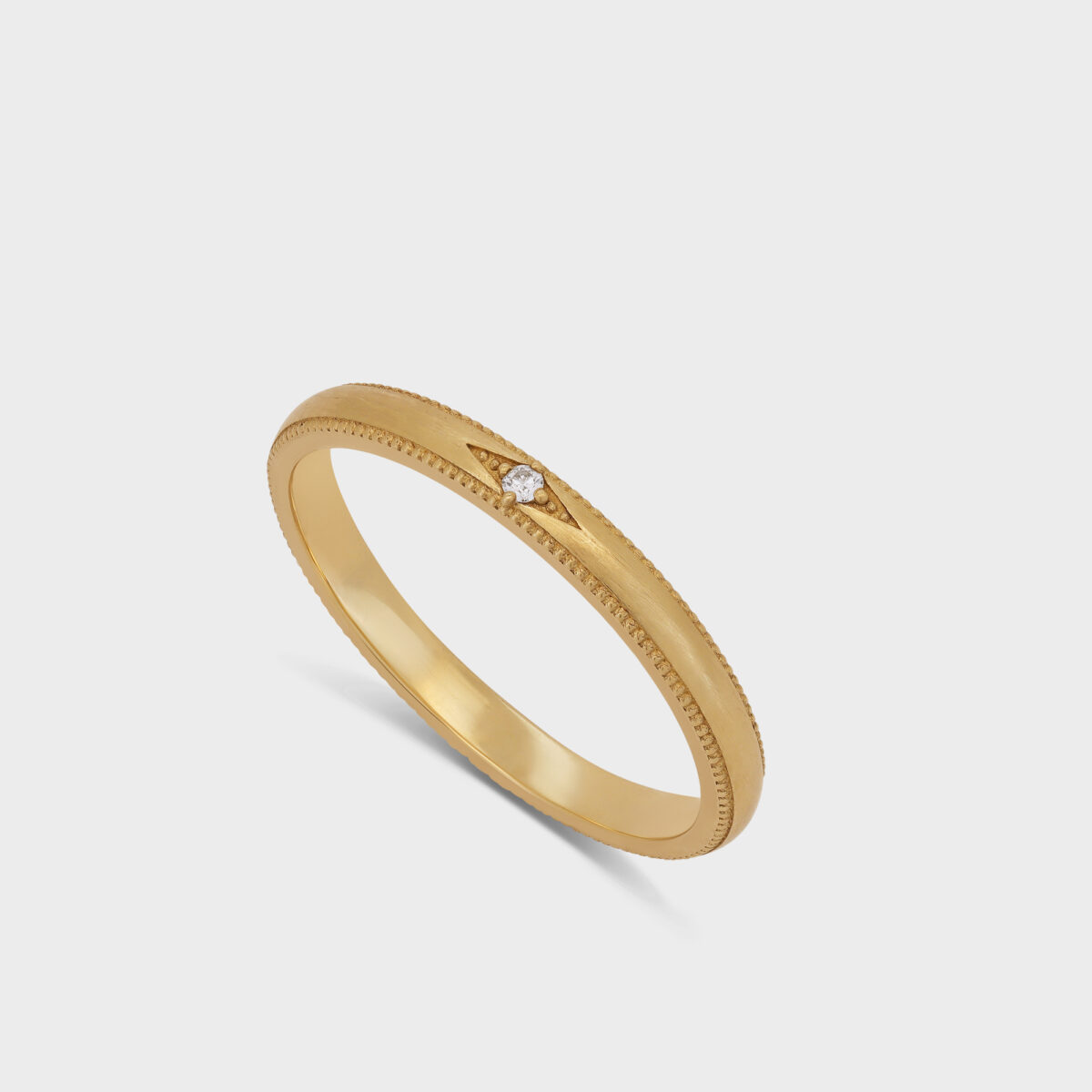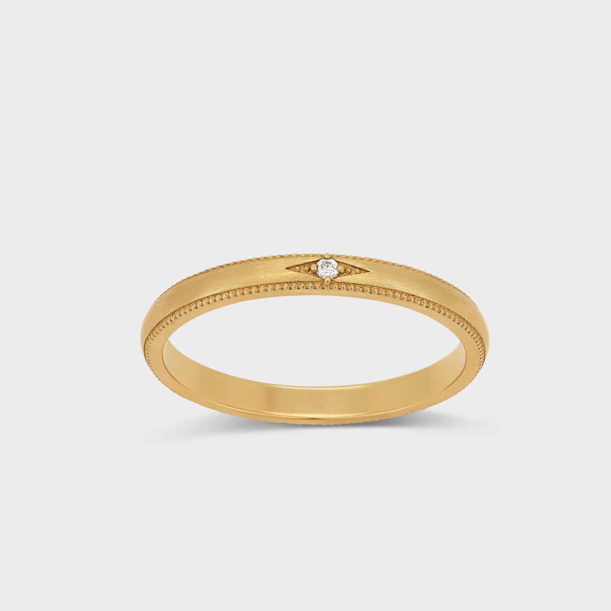 טבעת זהב יפיפייה ועדינה בעיטורי וינטג' ושיבוץ יהלום קטן במרכז.