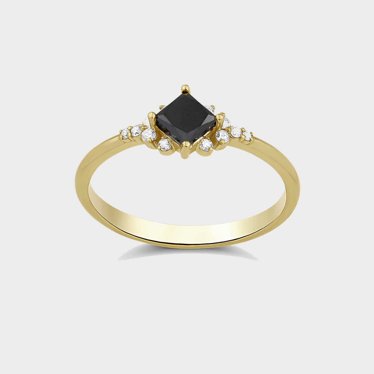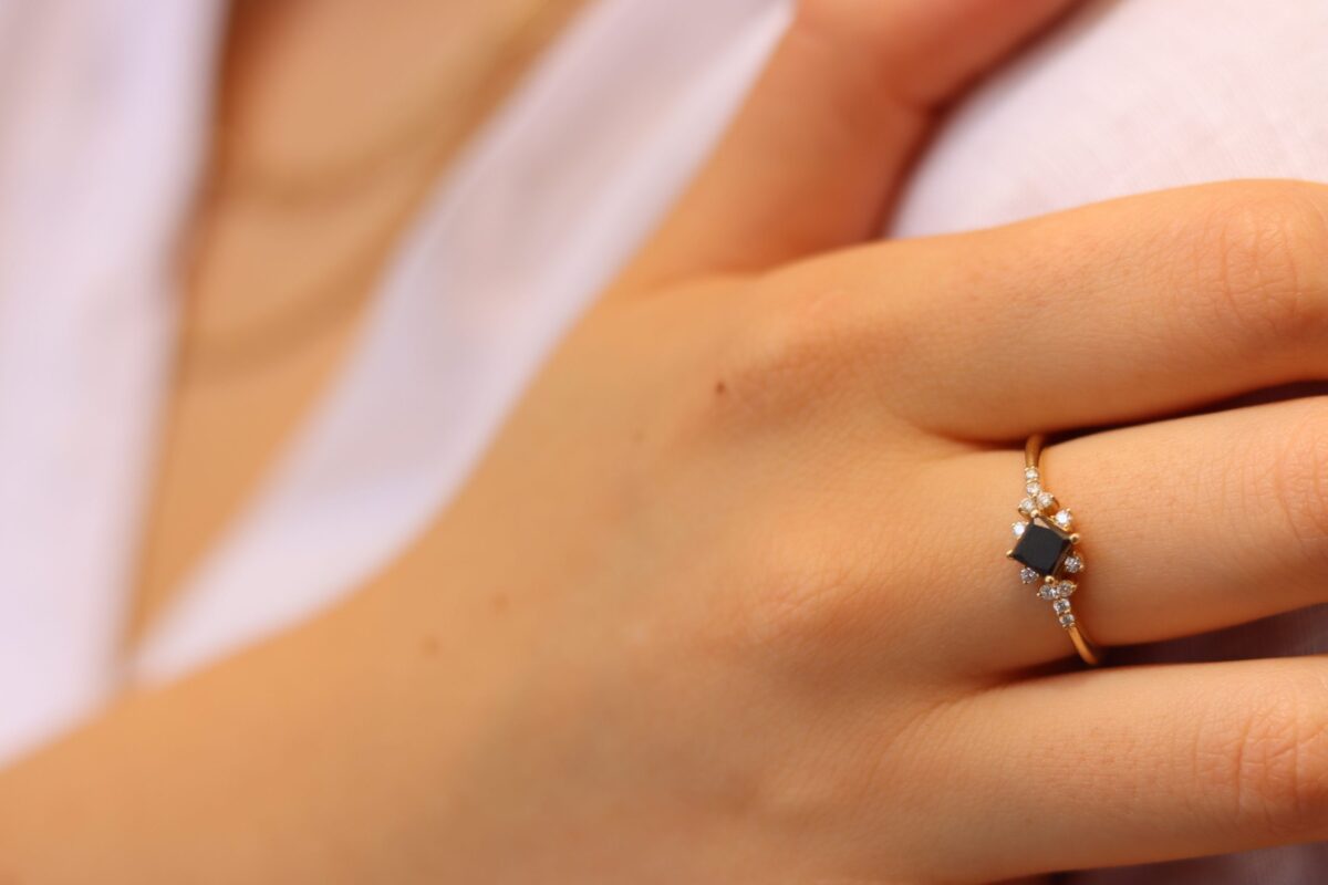 טבעת זהב יהלום שחור פרינסס