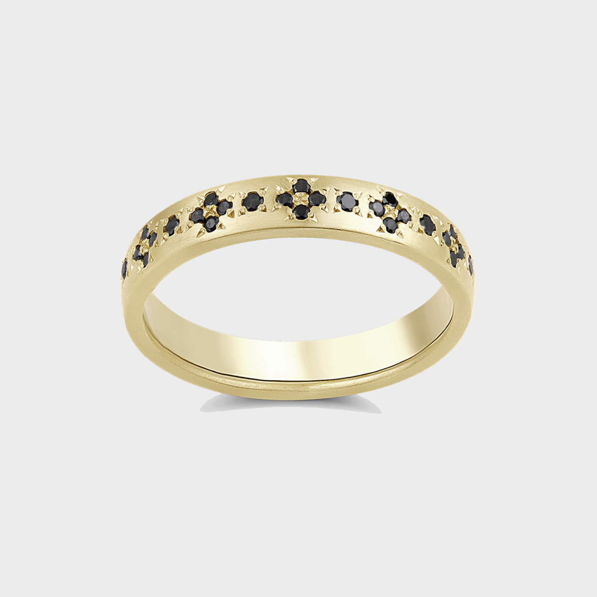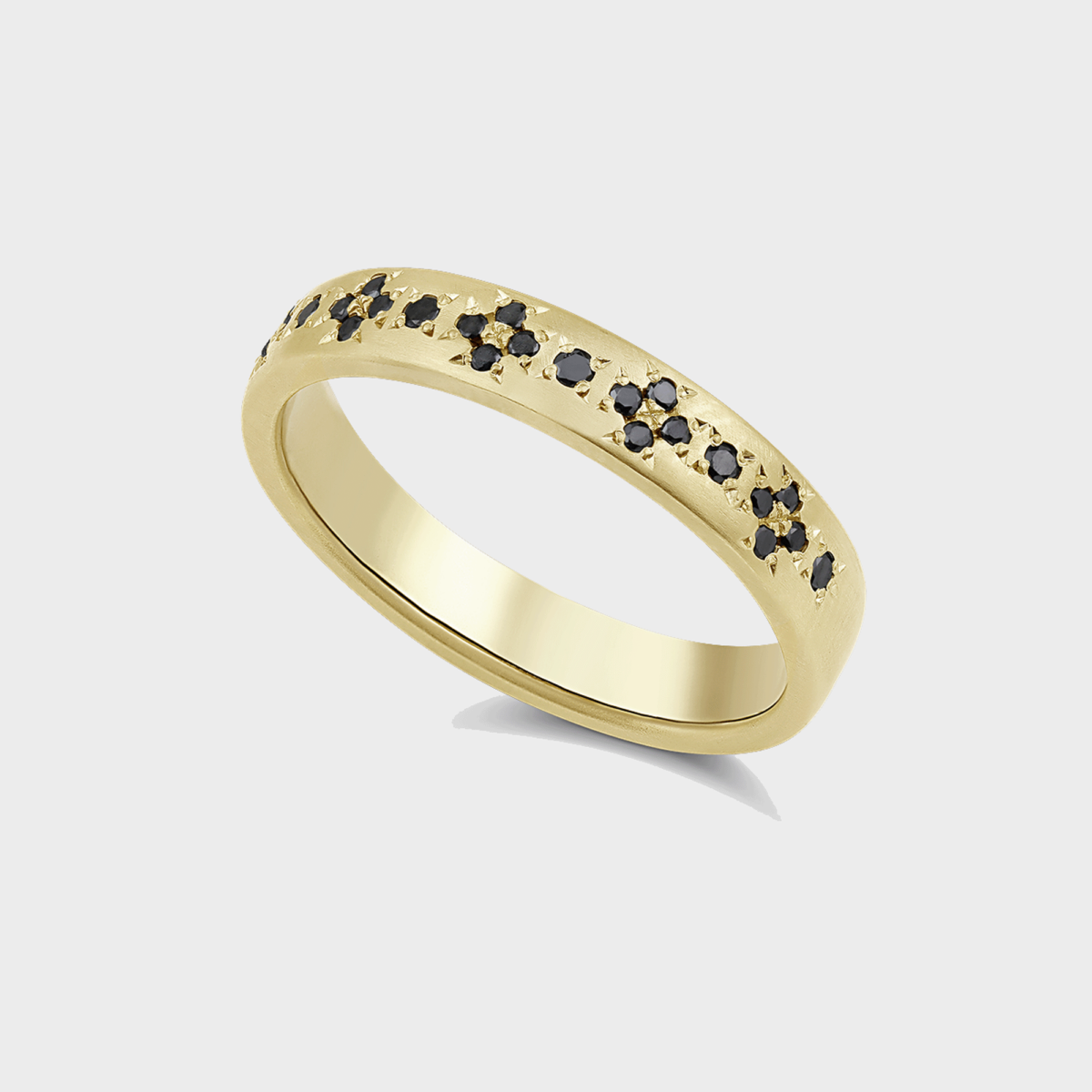 טבעת יהלום שחור מלבני ויהלומים טיפות