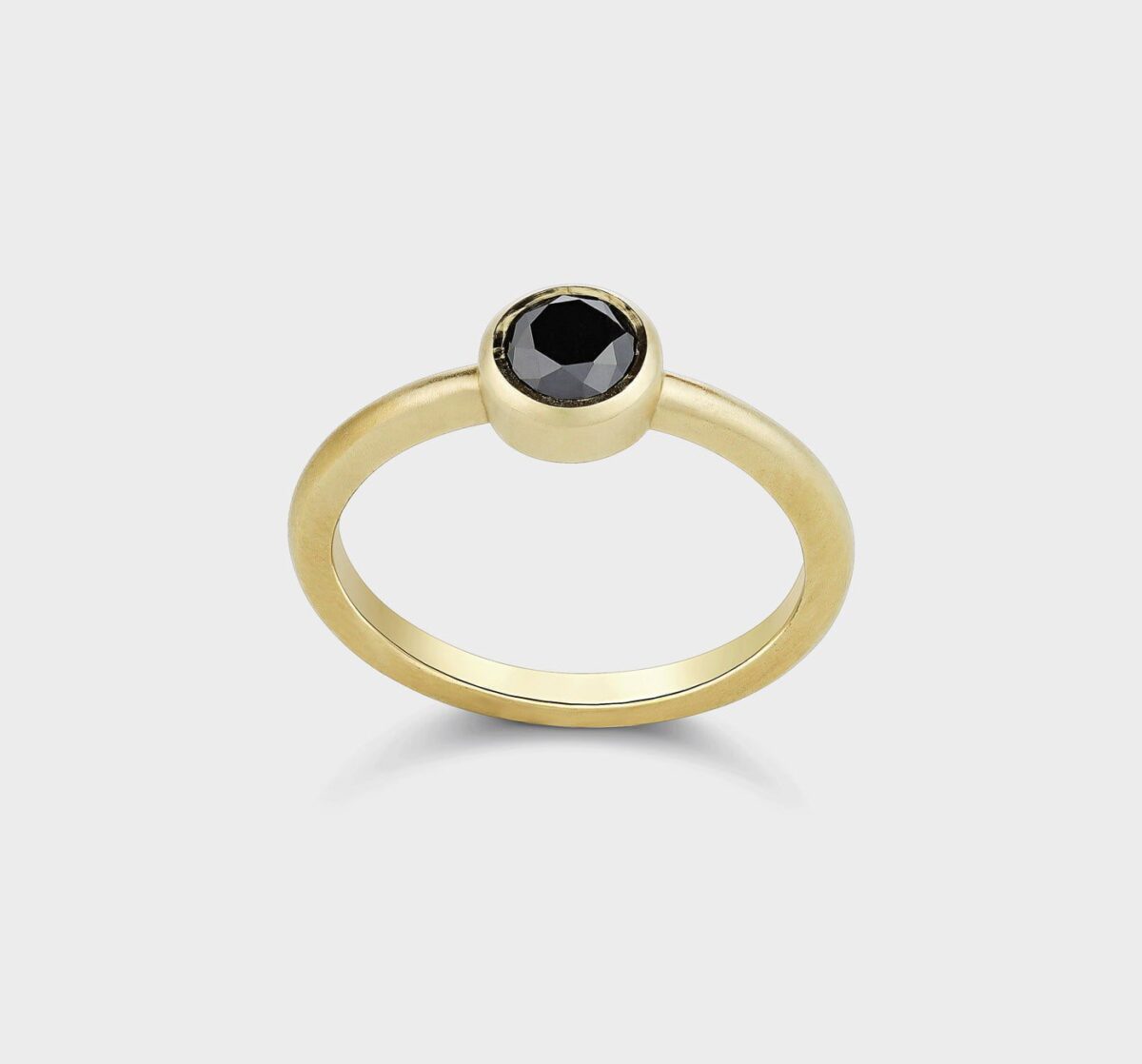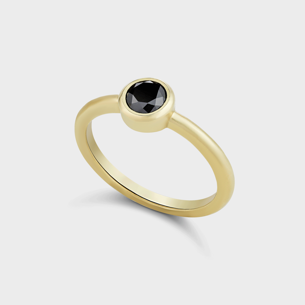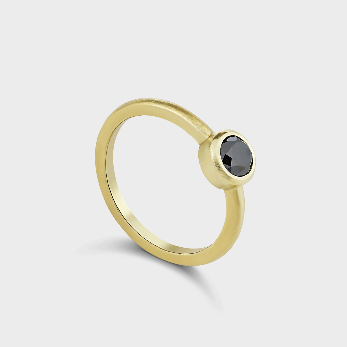טבעת בעבודת יד עשויה זהב 14k משובצת ביהלום שחור מהמם במשקל 0.70 קרט.