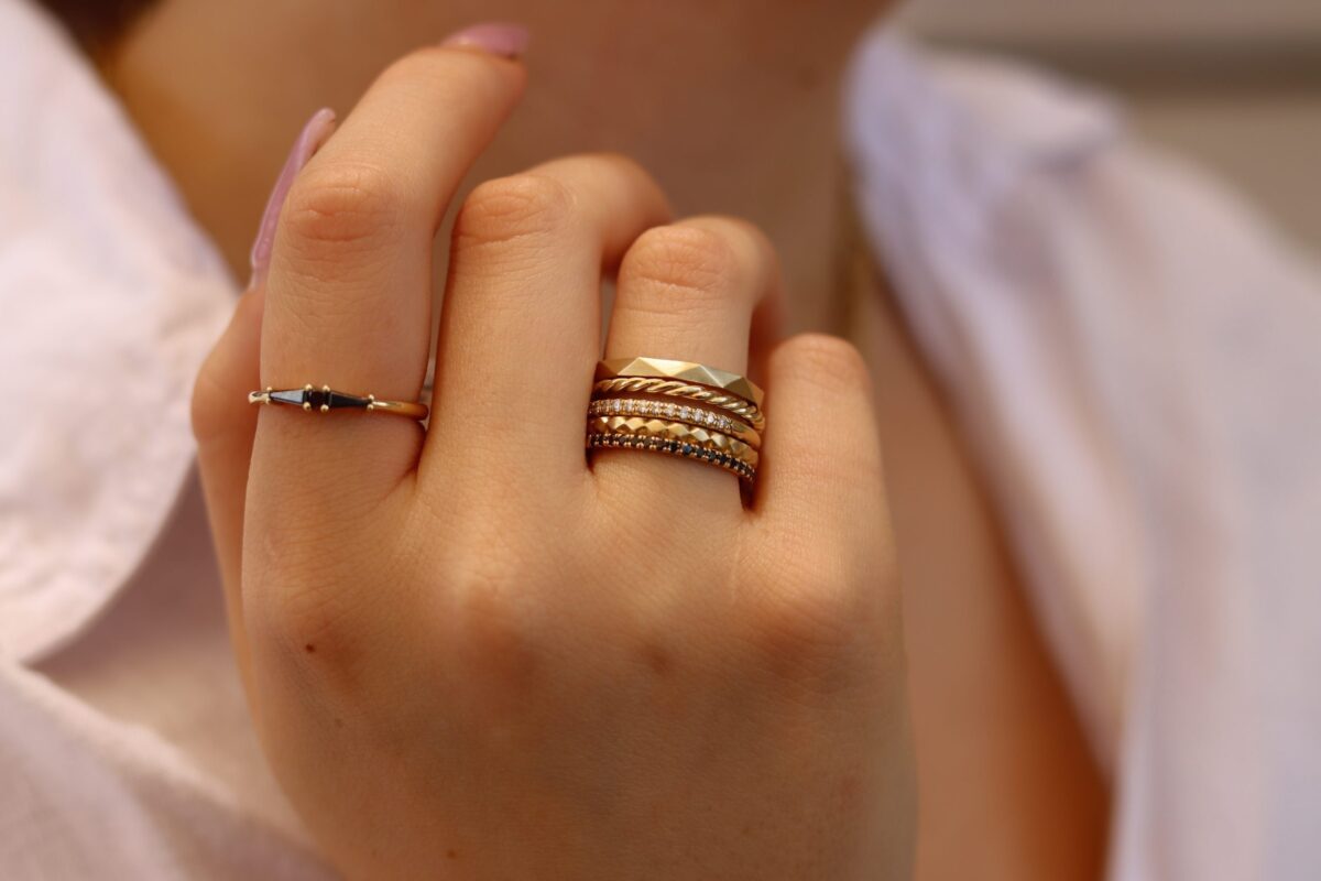 טבעת זהב עם יהלומים שחורים בחיתוכים מיוחדים