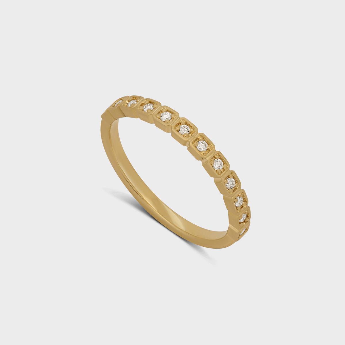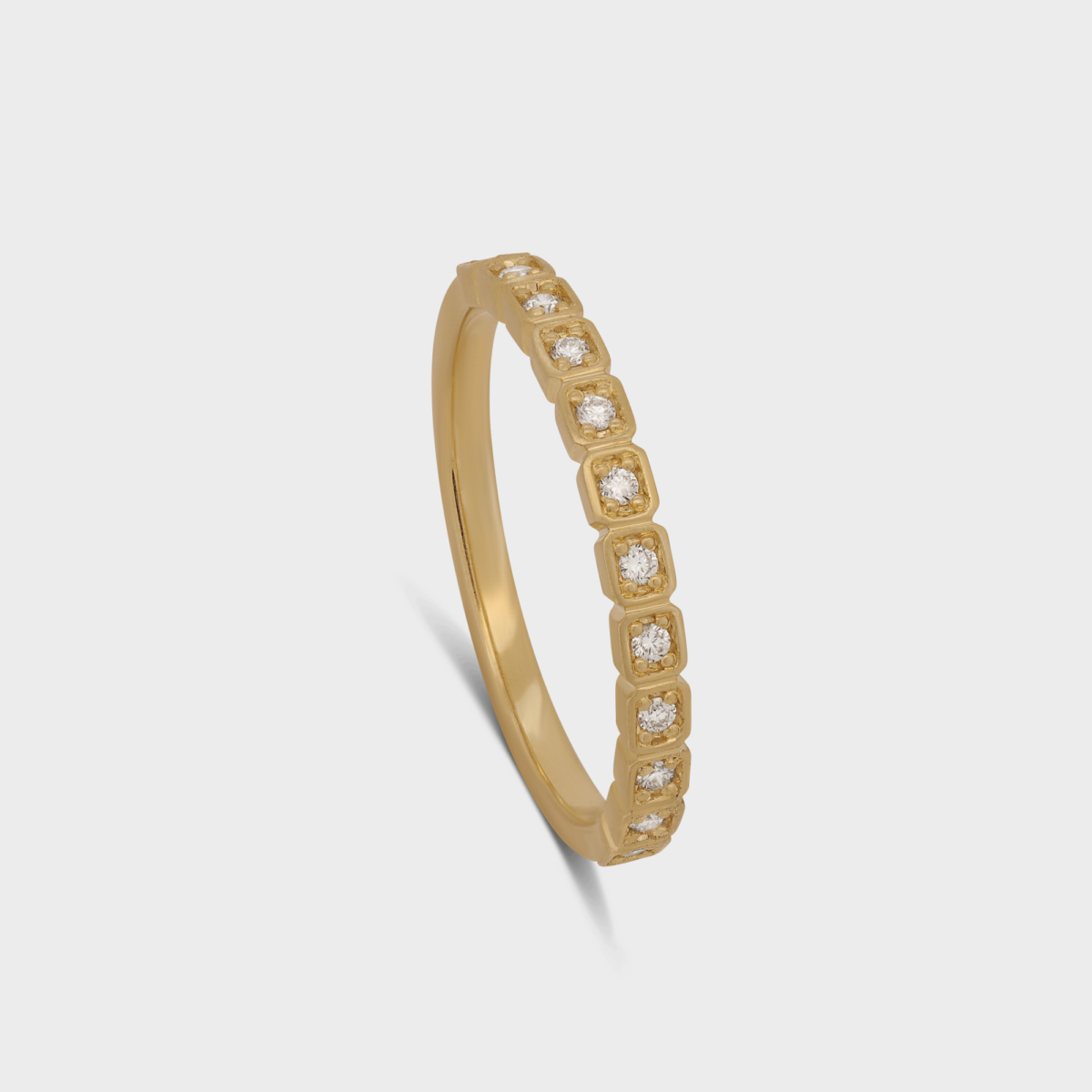 טבעת זהב ייחודית משובצת יהלומים נוצצים. עיצוב שיישאר יפיפה ומרהיב בכל הזמנים.