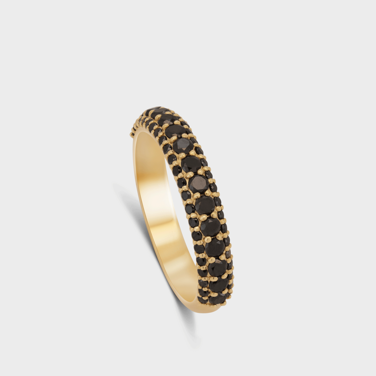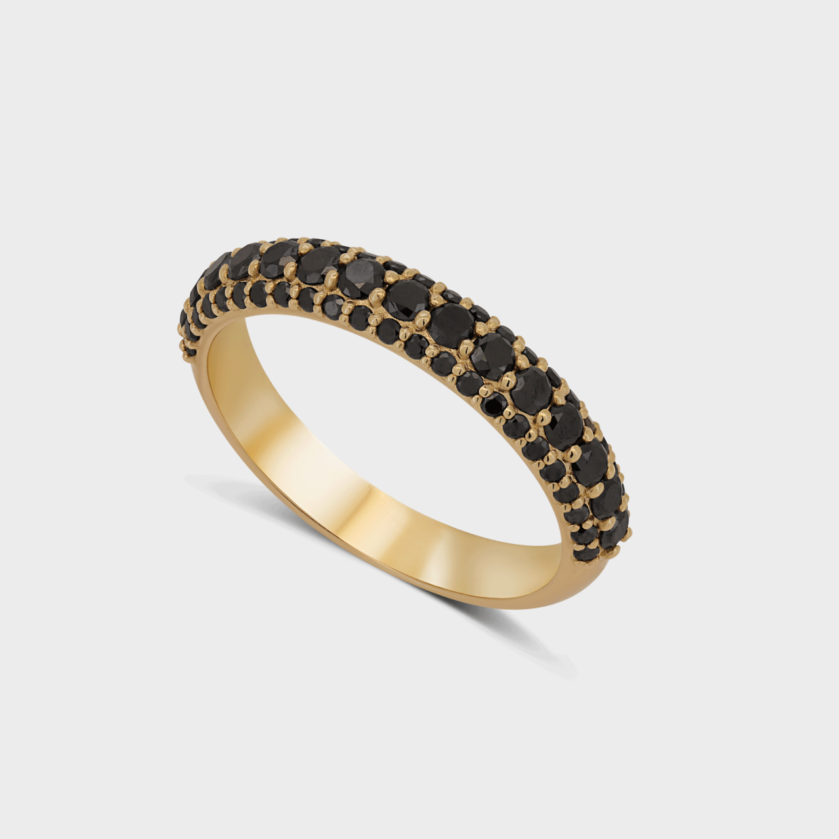 טבעת זהב מהודרת, משובצת 61 יהלומים שחורים, משדרת אופי וסטייל.