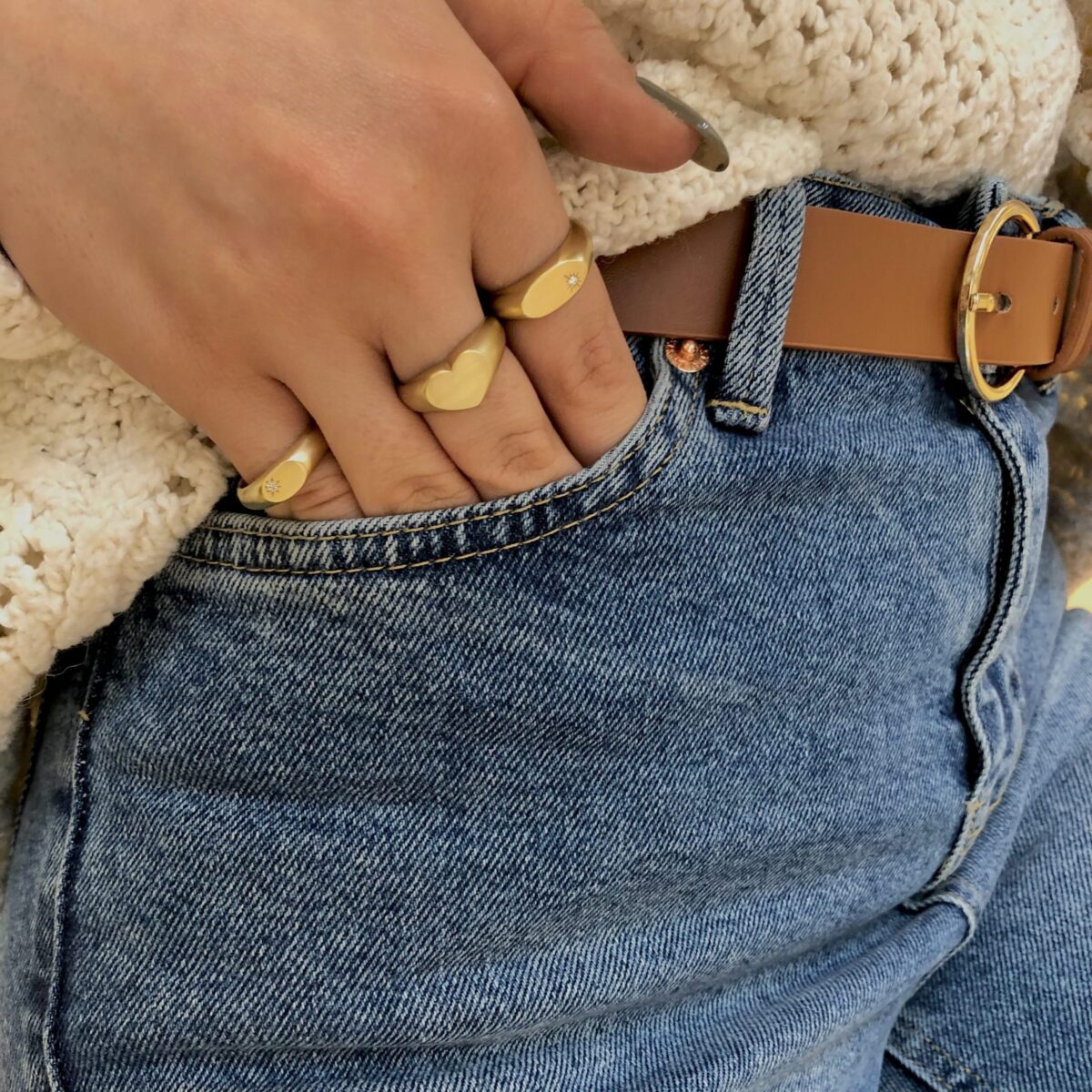 טבעת חותם לב גדול זהב צהוב 14k. גימור מט, ניתן לבקש גם גימור מבריק. טבעת שמרחיבה את הלב.
