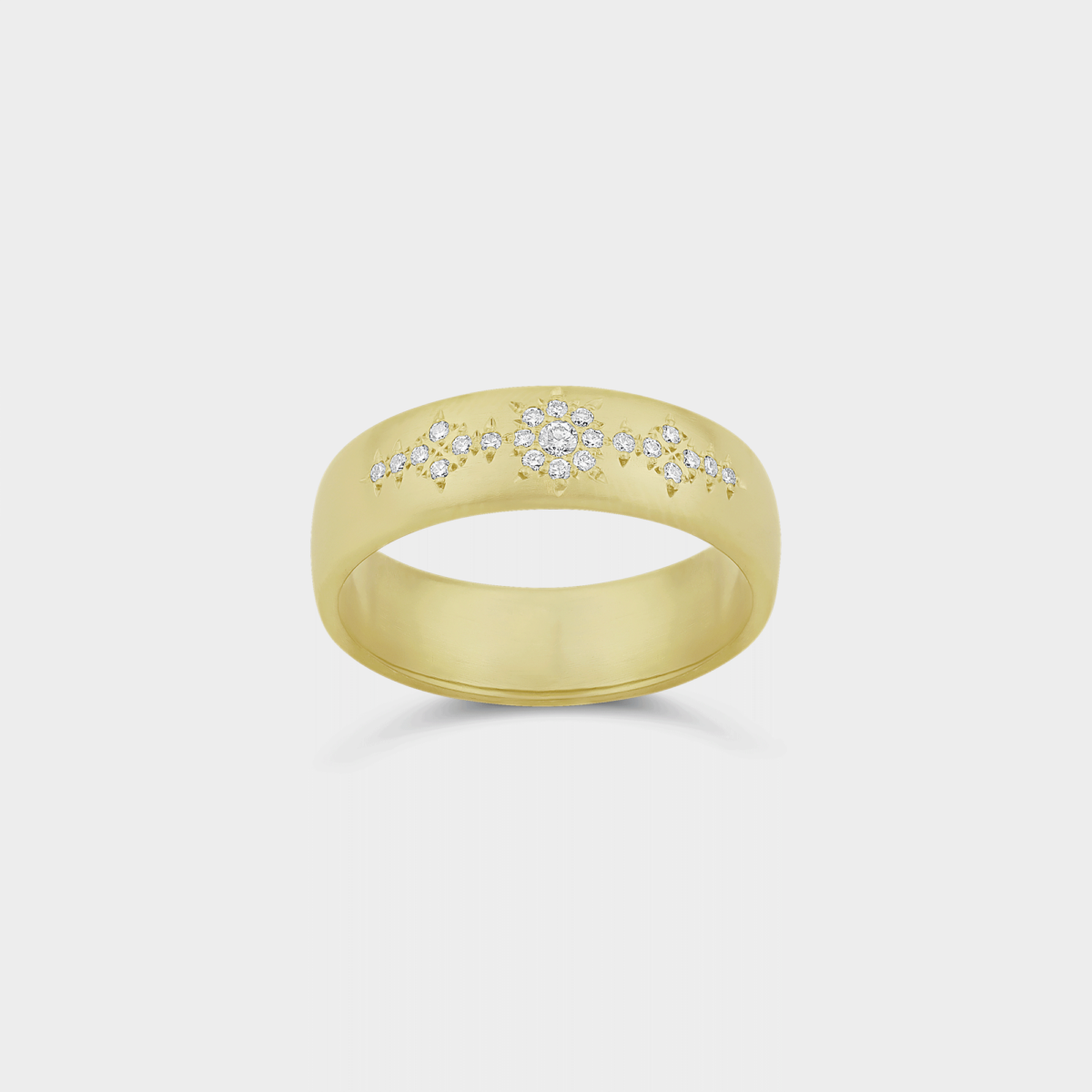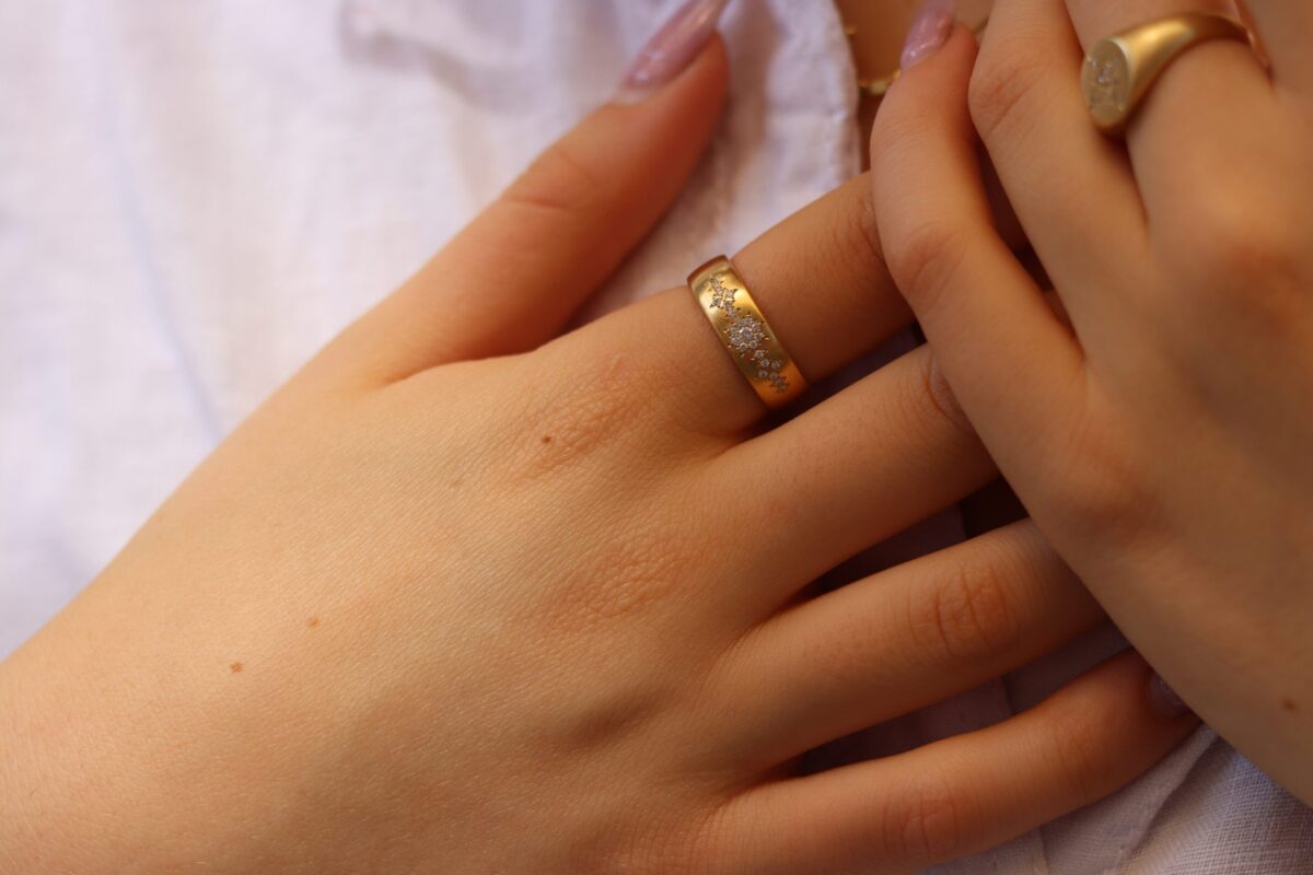 עיטורי יהלומים בטבעת זהב 18K שתיתן לך להרגיש הכי מיוחדת שיש.