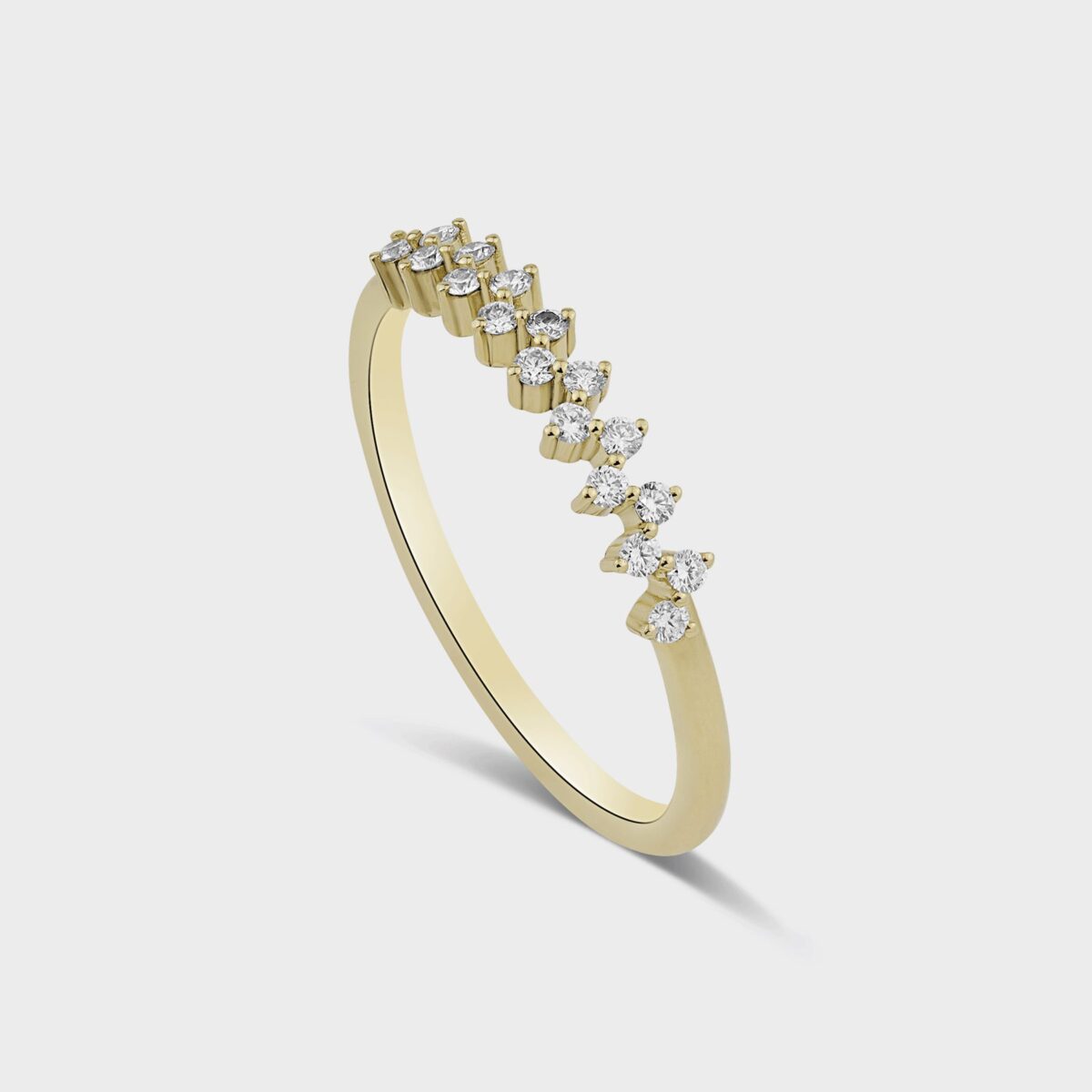 יהלומים מנצנצים משובצים בטבעת מהפנטת במיוחד בשיבוץ זיגזג שנותן אמירה ונוכחות בגימורים מודרנים ברמת הצורפות הגבוהה ביותר.