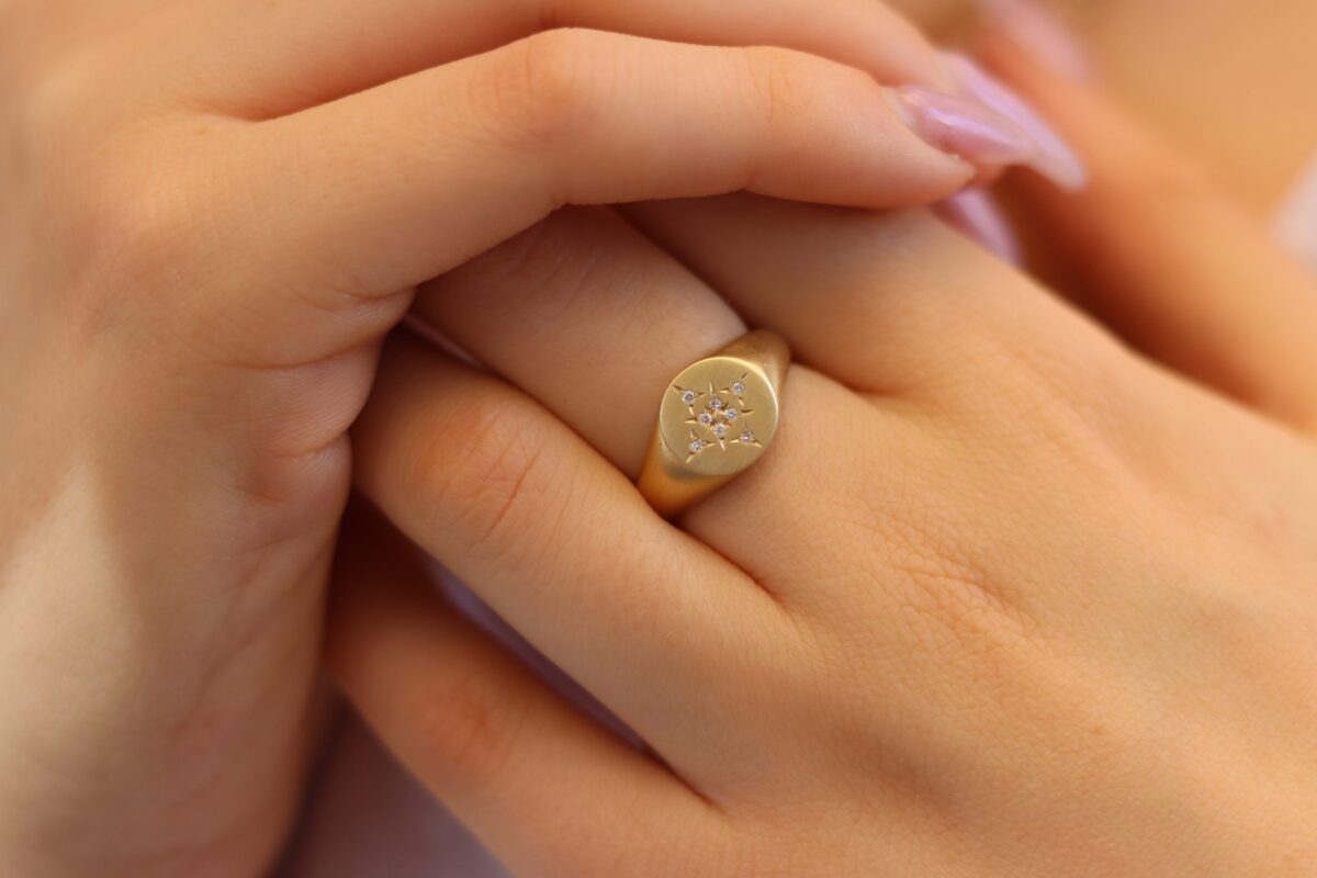 טבעת חותם שיקית משובצת יהלומים