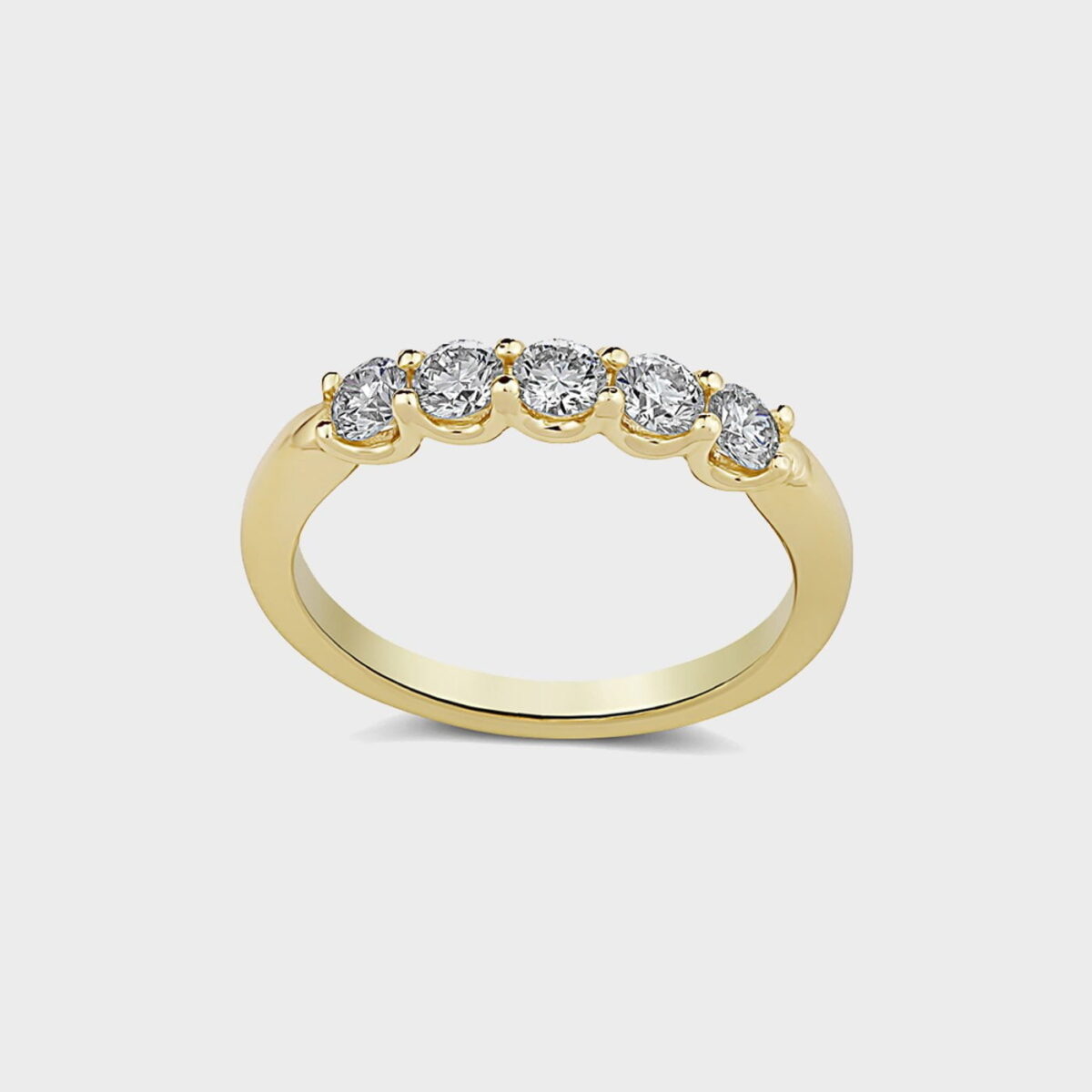 טבעת זהב 14k מעוצבת בעבודת יד ומשובצת 5 יהלומים F VS מרכזיים במשקל 0.62 קרט