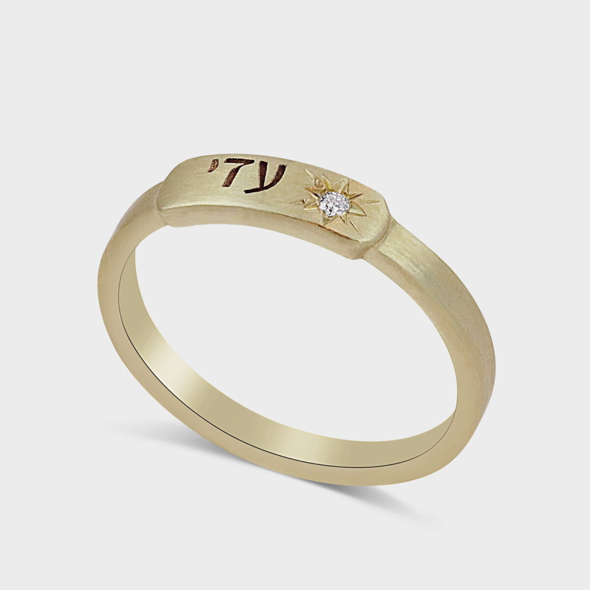 טבעת שם מיוחדת, קצת וינטג' קצת מודרנית ומאוד מרגשת. בין אם זה שמך או שם של מישהו שקרוב לליבך, הטבעת הזו תבלוט עם שיבוץ היהלום והמבנה המיוחד שלה.