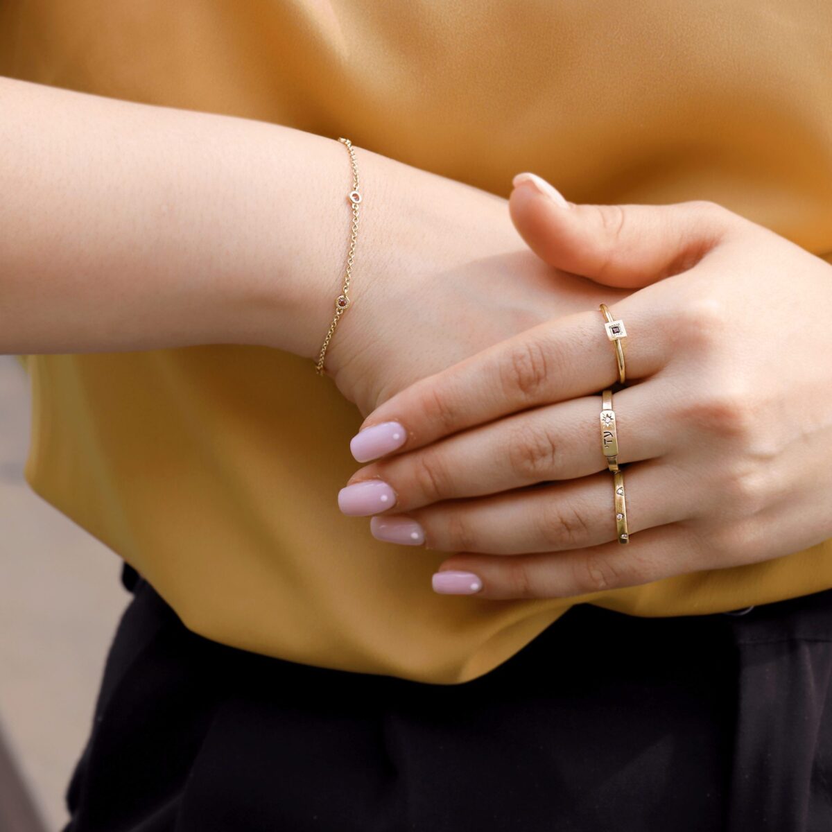 קולקציית תכשיטי שמות יוקרתית בעבודת יד מזהב ויהלומים, טבעת זהב עדינה ומיוחדת עם שמות הילדים מרגשת מלאה באהבה שתציף את הלב באושר בכל פעם שתסתכלי עליה.