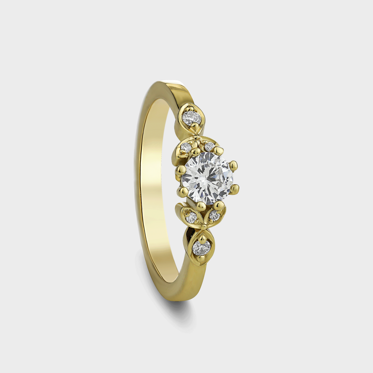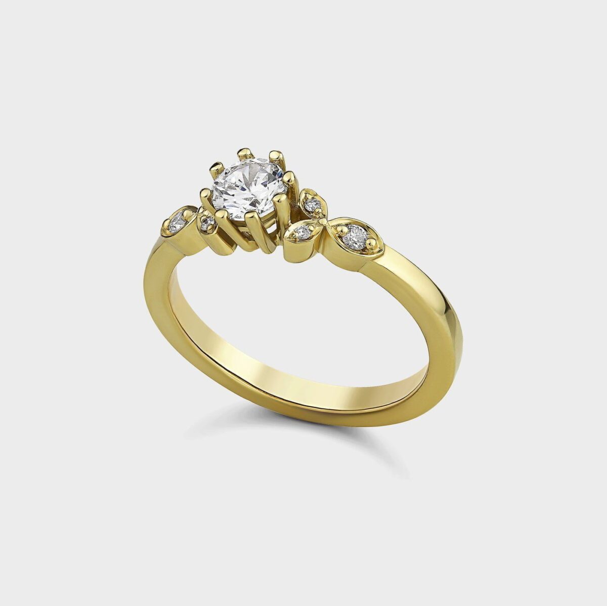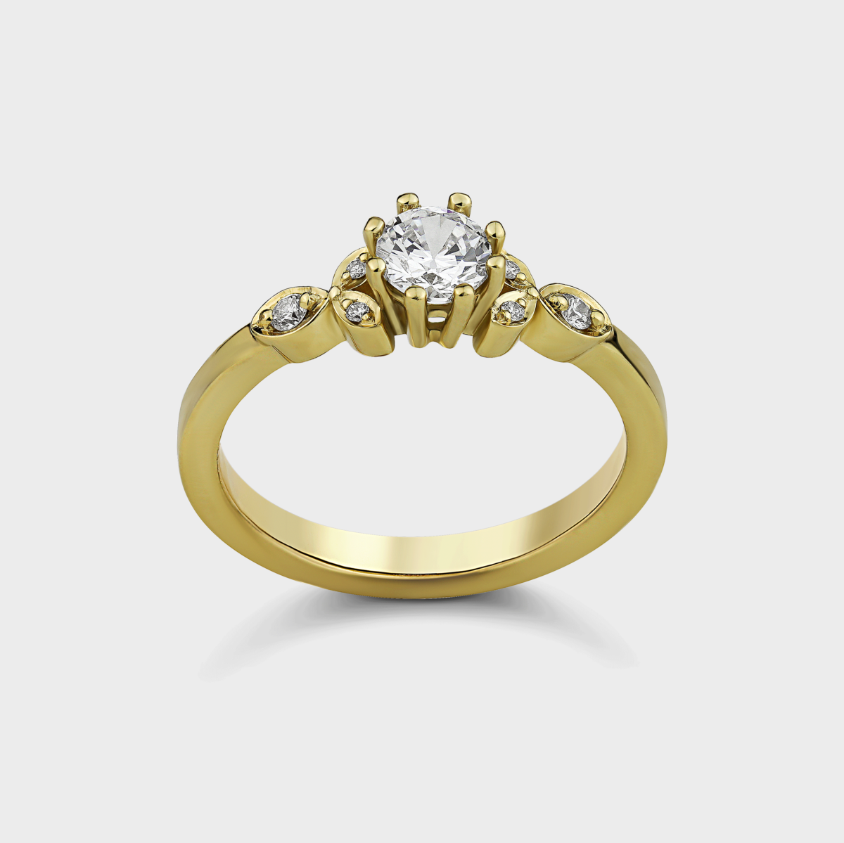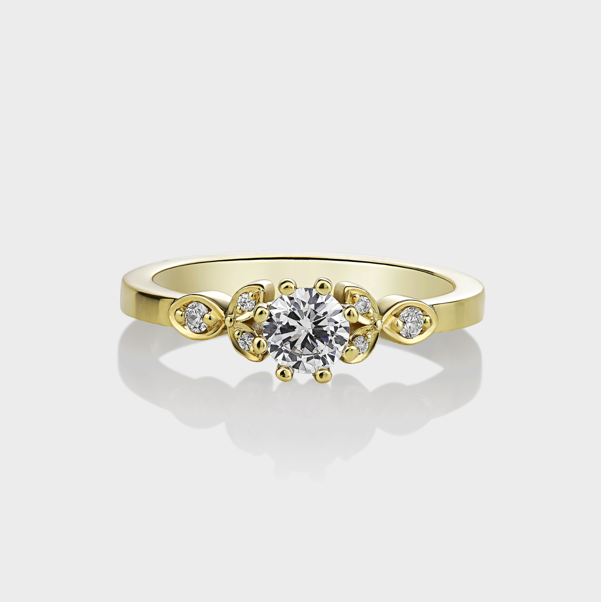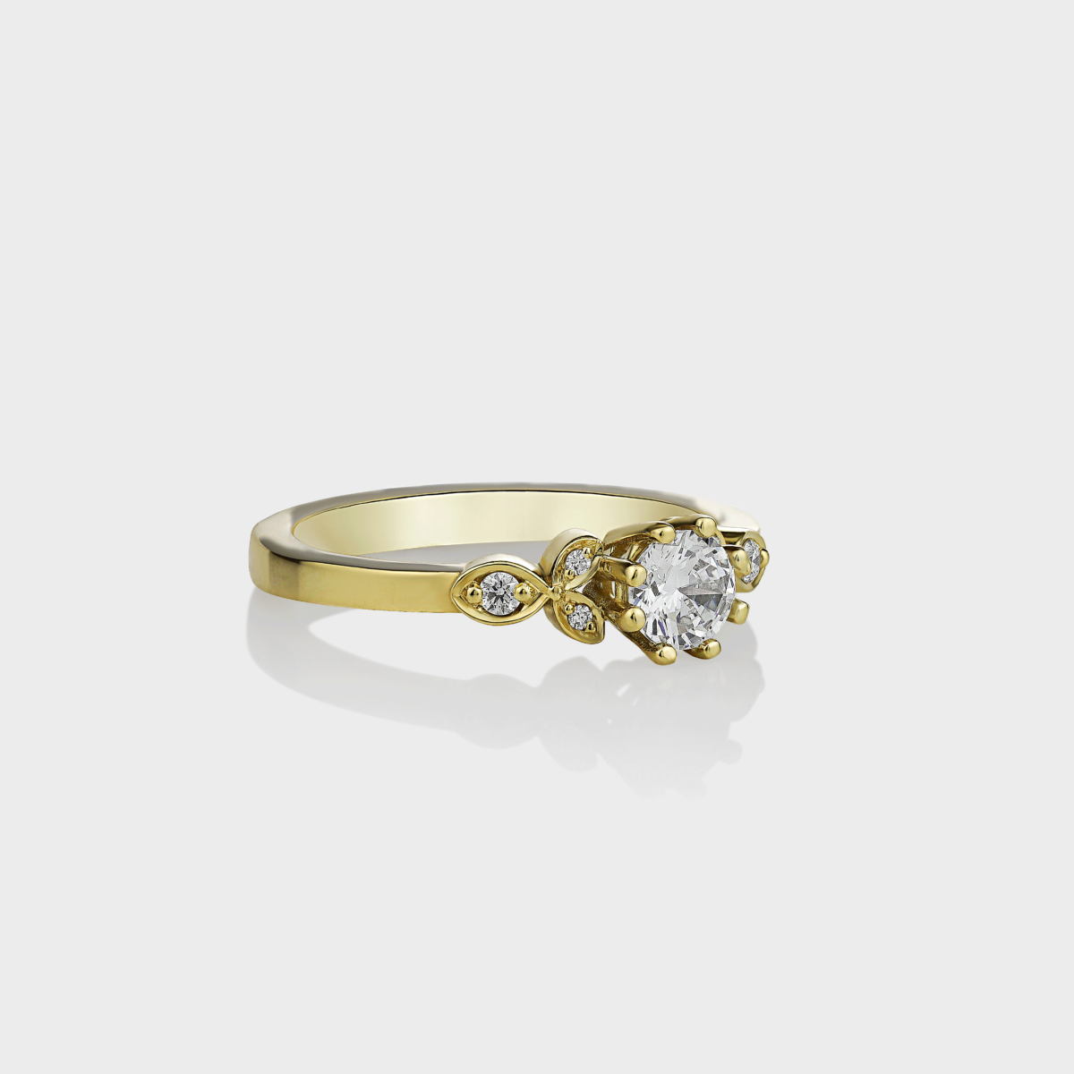 טבעת אירוסין סוליטר בזהב 14k, משובצת יהלום מרכזי במשקל 0.50 קרט (F, VS – GIA Certificate) שאותו מחזיקות 8 שני זהב יפיפיות שמוסיפות טוויסט לעיצוב הקלאסי. בכל צד משובצים שלושה יהלומים יפיפיים במבנה ייחודי ומרשים.