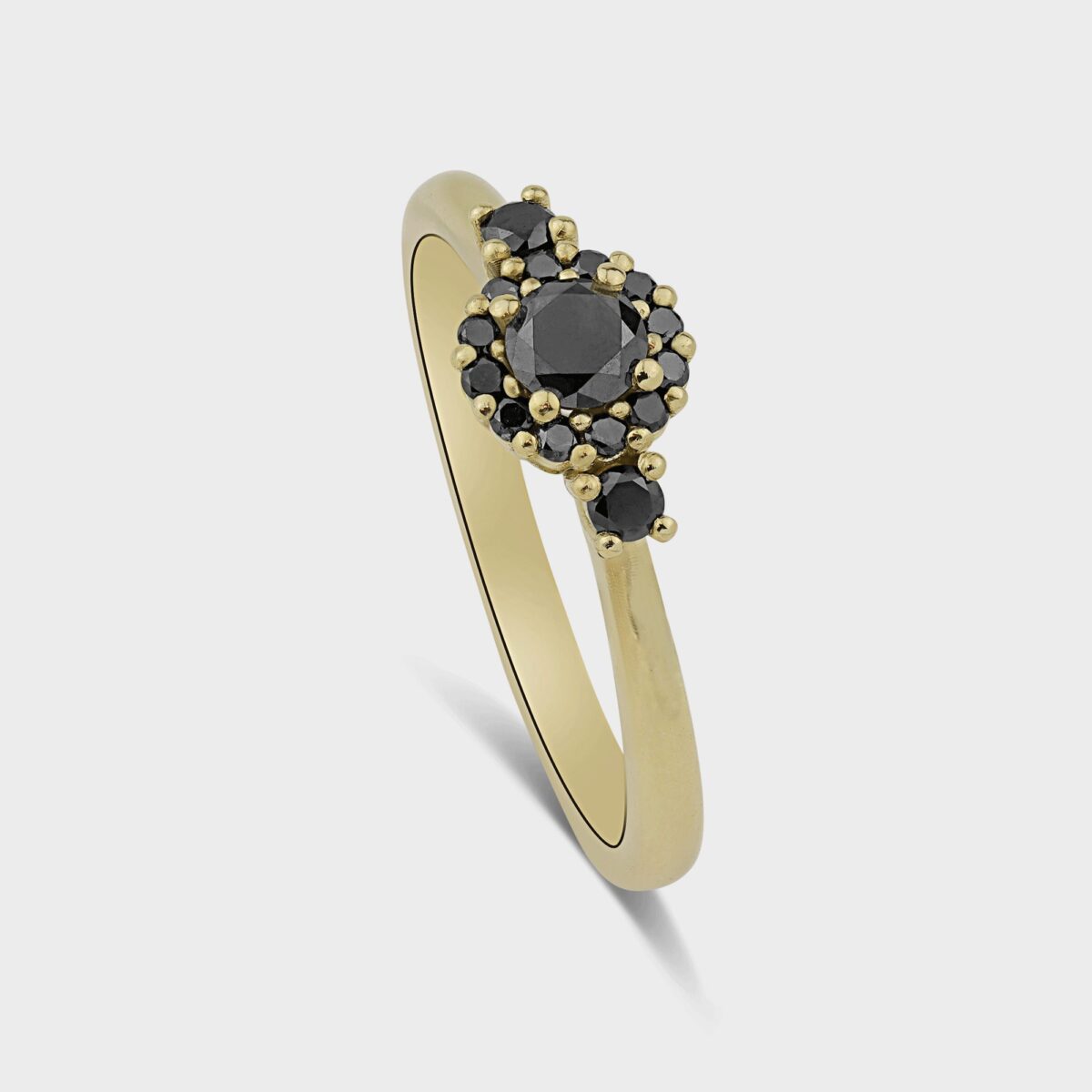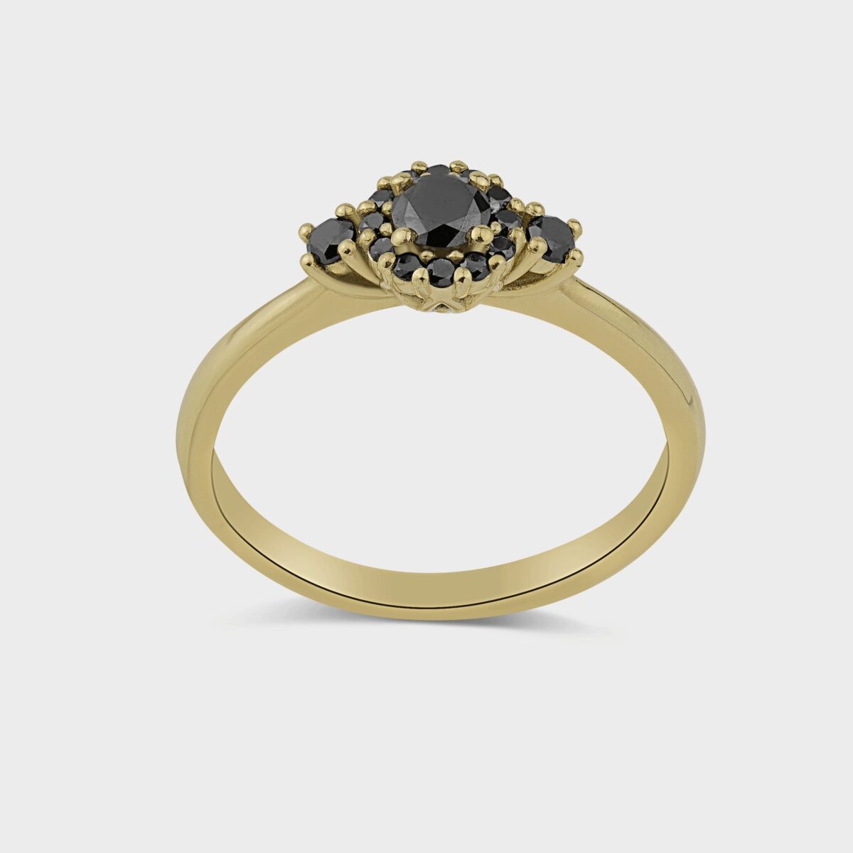 יהלום שחור מרשים במשקל 0.23 קרט בעיצוב קלאסי על זמני בתוספת של 14 יהלומים שחורים ויצירה אחת מושלמת בטבעת מרהיבה ומרגשת.
