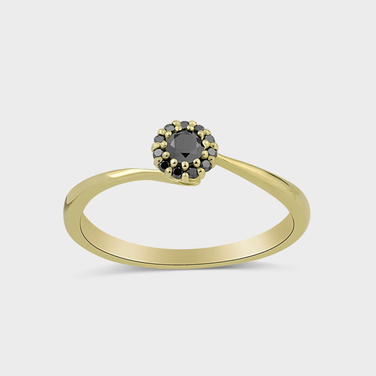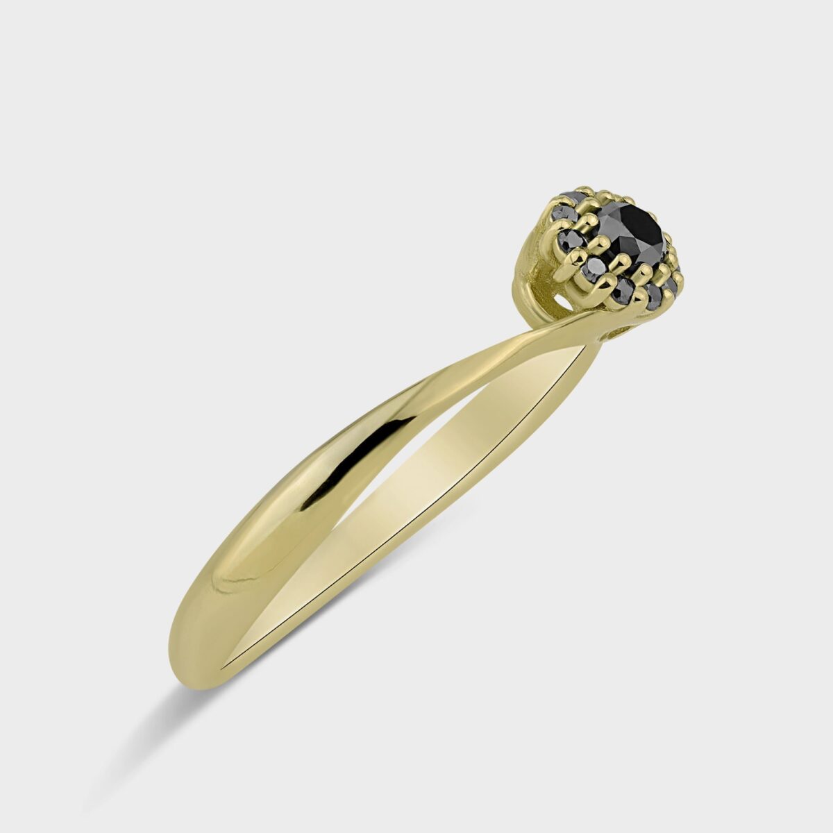 טבעת יפיפיה ואלגנטית. כמעט טבעת קלאסית של יהלום מרכזי רק עם יהלומים שחורים וטויסט. סקסית עדינה ונשית עם יהלום שחור מחוספס.