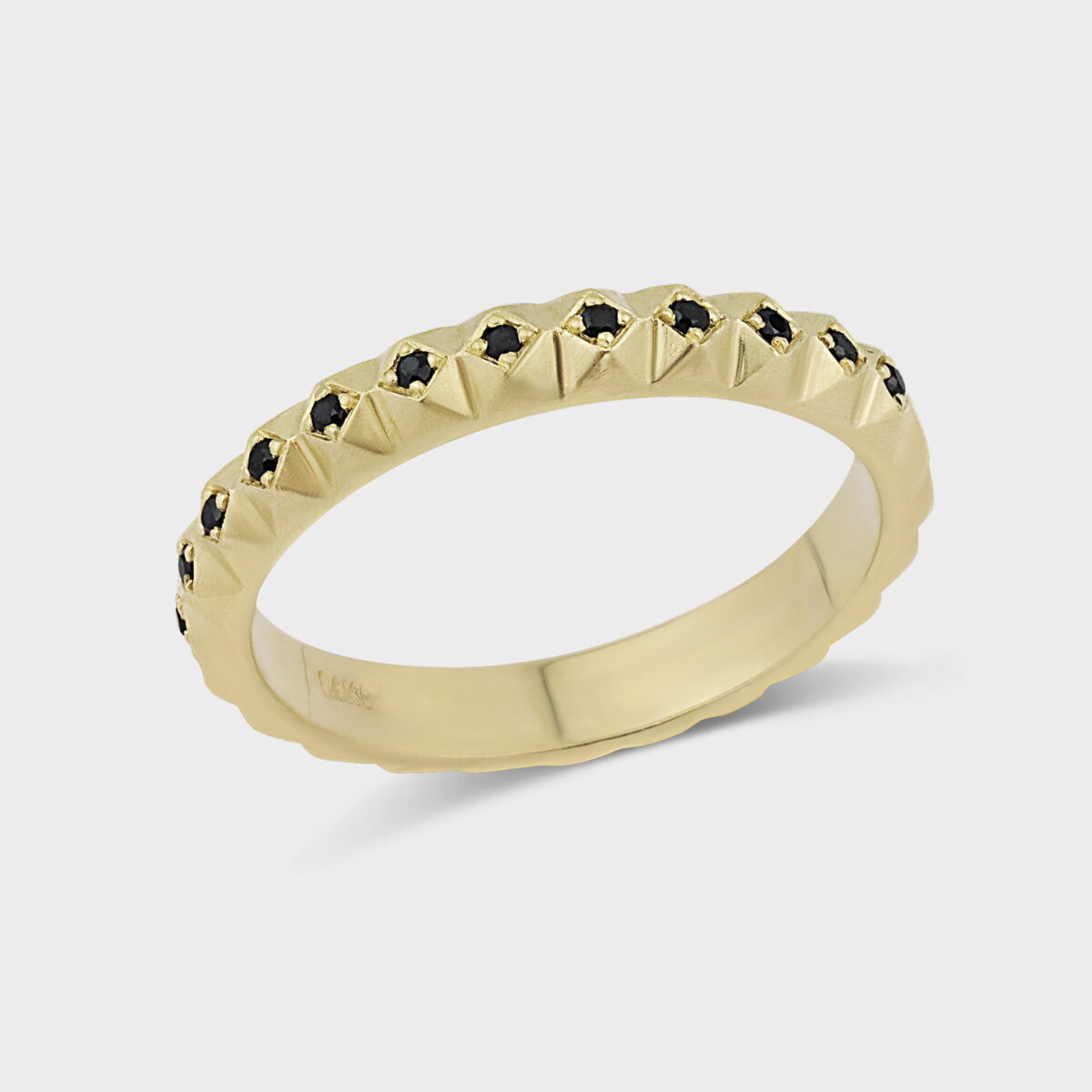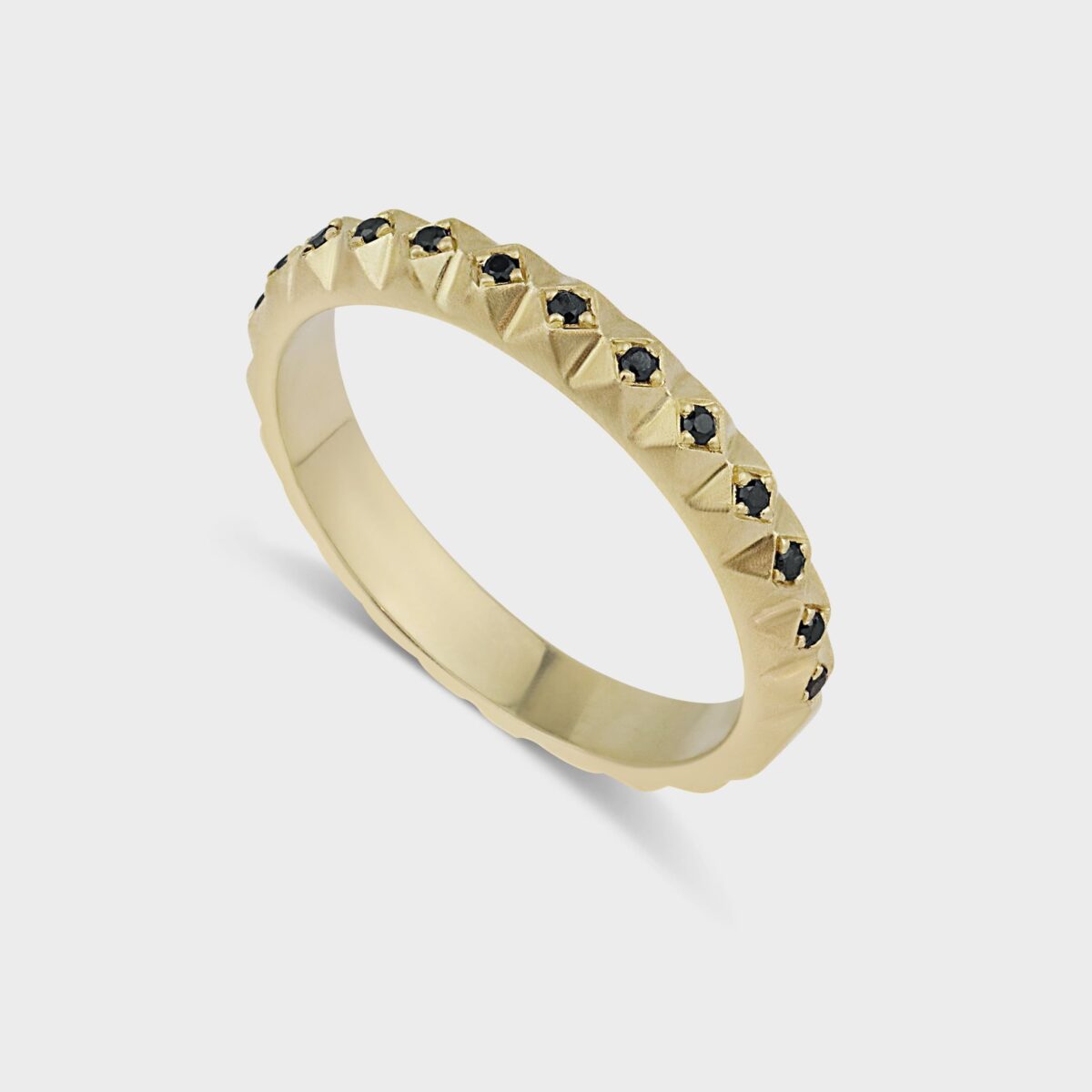 13 שיבוצי יהלומים שחורים בטבעת זהב 14 קרט מרשימה. הכי מיוחדת שתענדי. נשיות, ייחודיות וכמובן הרבה חיספוס ושיק.