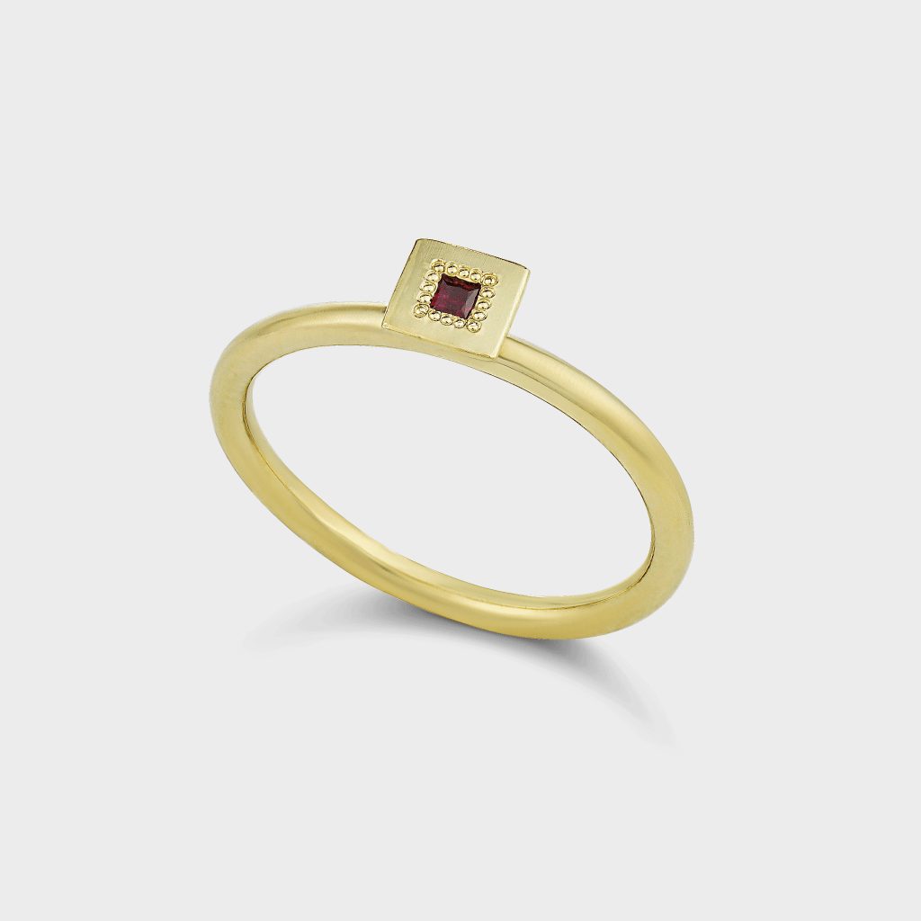 טבעת זהב 14K ריבוע משובץ רובי