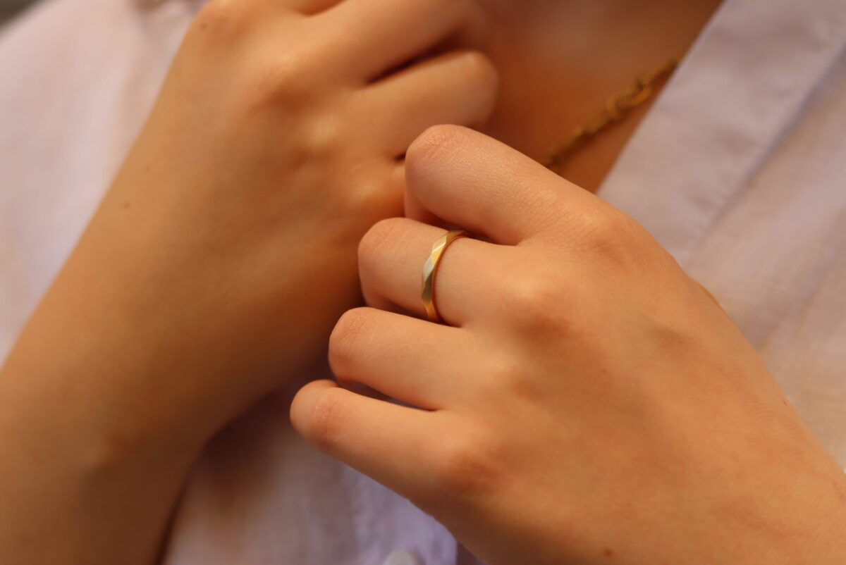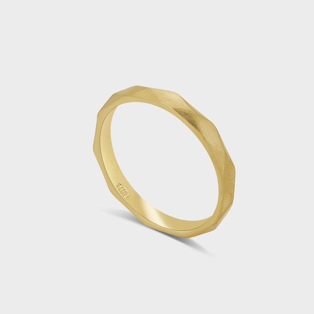 טבעת נישואין ייחודית בעלת מבנה של מעויינים. טבעת עדינה ומעניינת מיוצרת בעבודת יד מזהב 14K.
