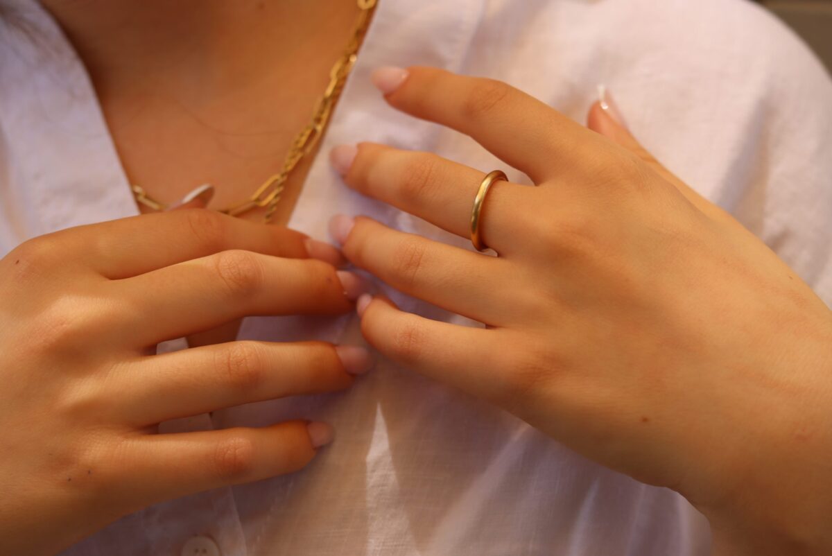 טבעת נישואין קלאסית בפרופיל עגול. הטבעת עשויה מזהב 14k בעבודת יד ברמת הצורפות הגבוהה ביותר.