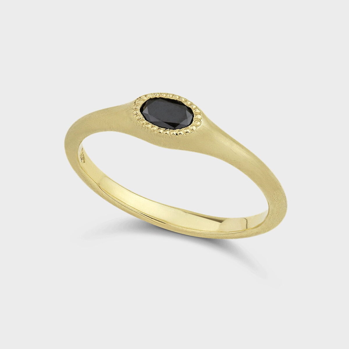 טבעת חותם לאישה זהב ויהלומים שחורים