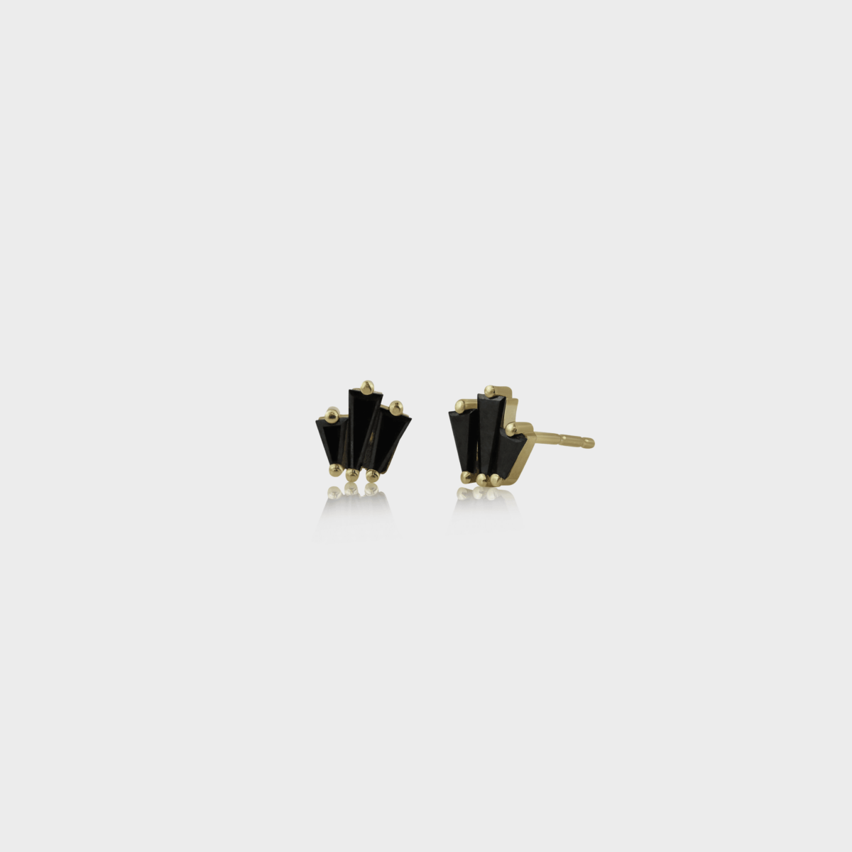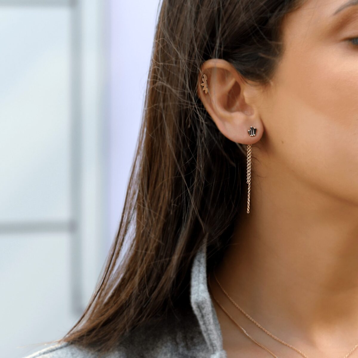 עגילי זהב 14k צמודים הכי מיוחדים שתראי משובצים יהלומים שחורים בחיתוך טייפר 0.68 קרט. סטייל ייחודי ונוכחות שיא.