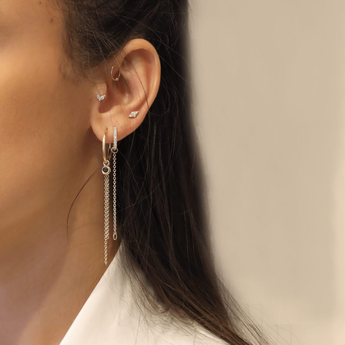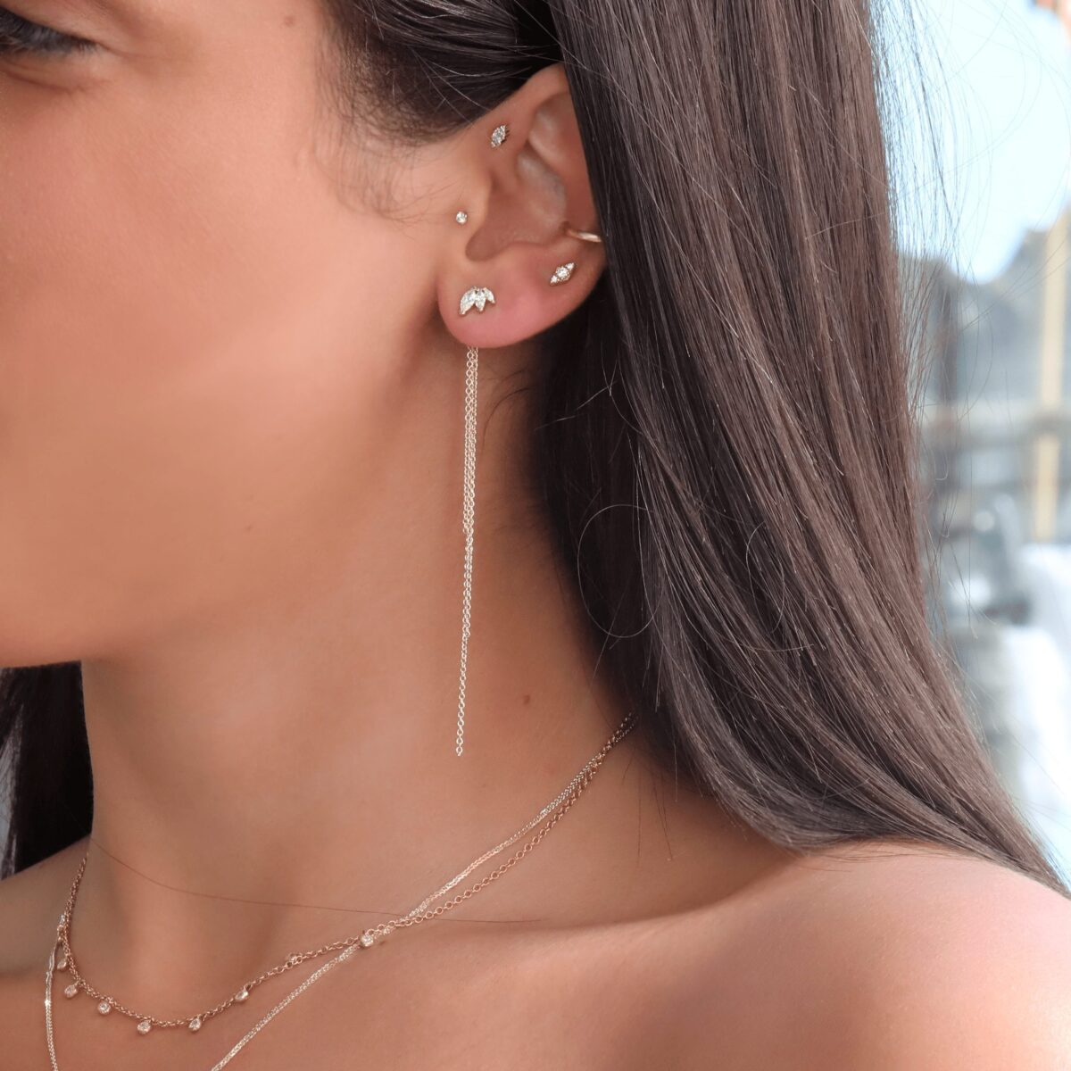 עגילים צמודים מזהב 14k מהממים משובצים 6 יהלומים במשקל 0.11 קרט F VS שהופכים כל יום לחוויה מנצנצת במיוחד.