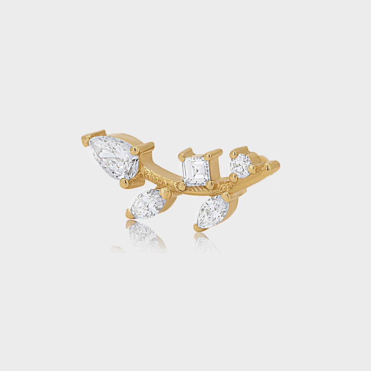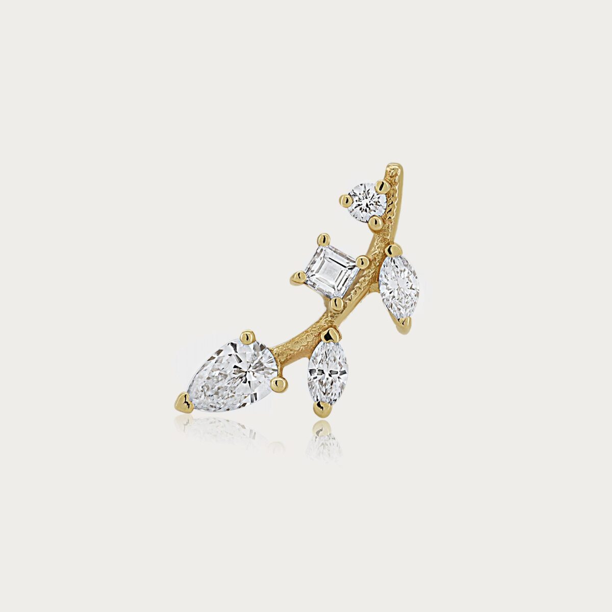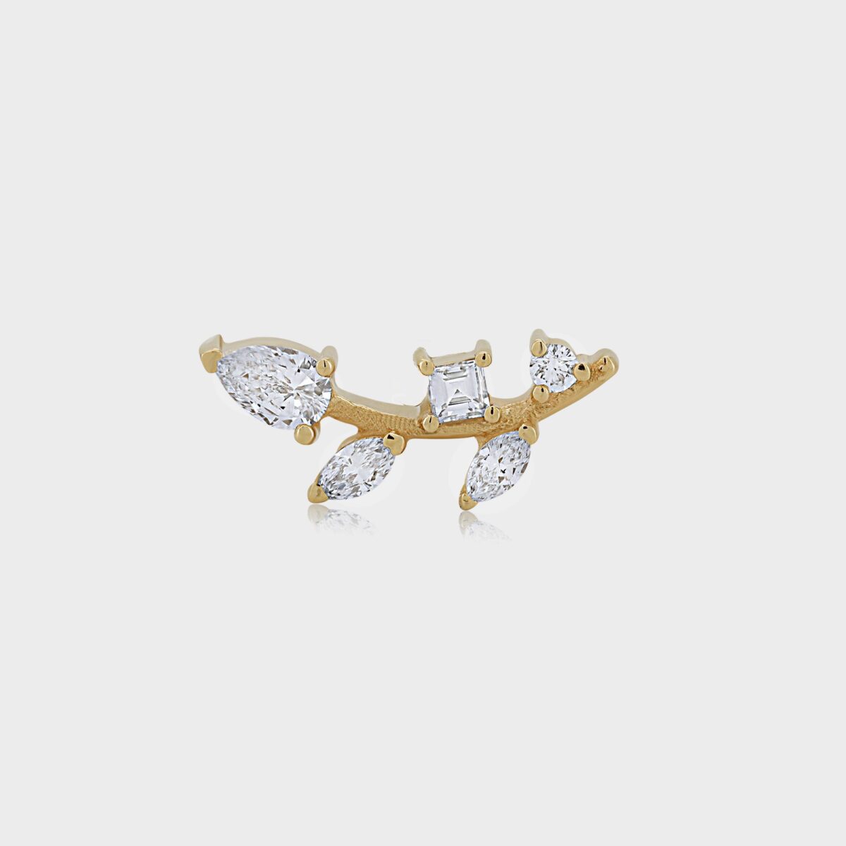 פירסינג מטפס זהב 14 קרט. יוקרתי שיקי ומנצנץ משובץ 5 יהלומים.