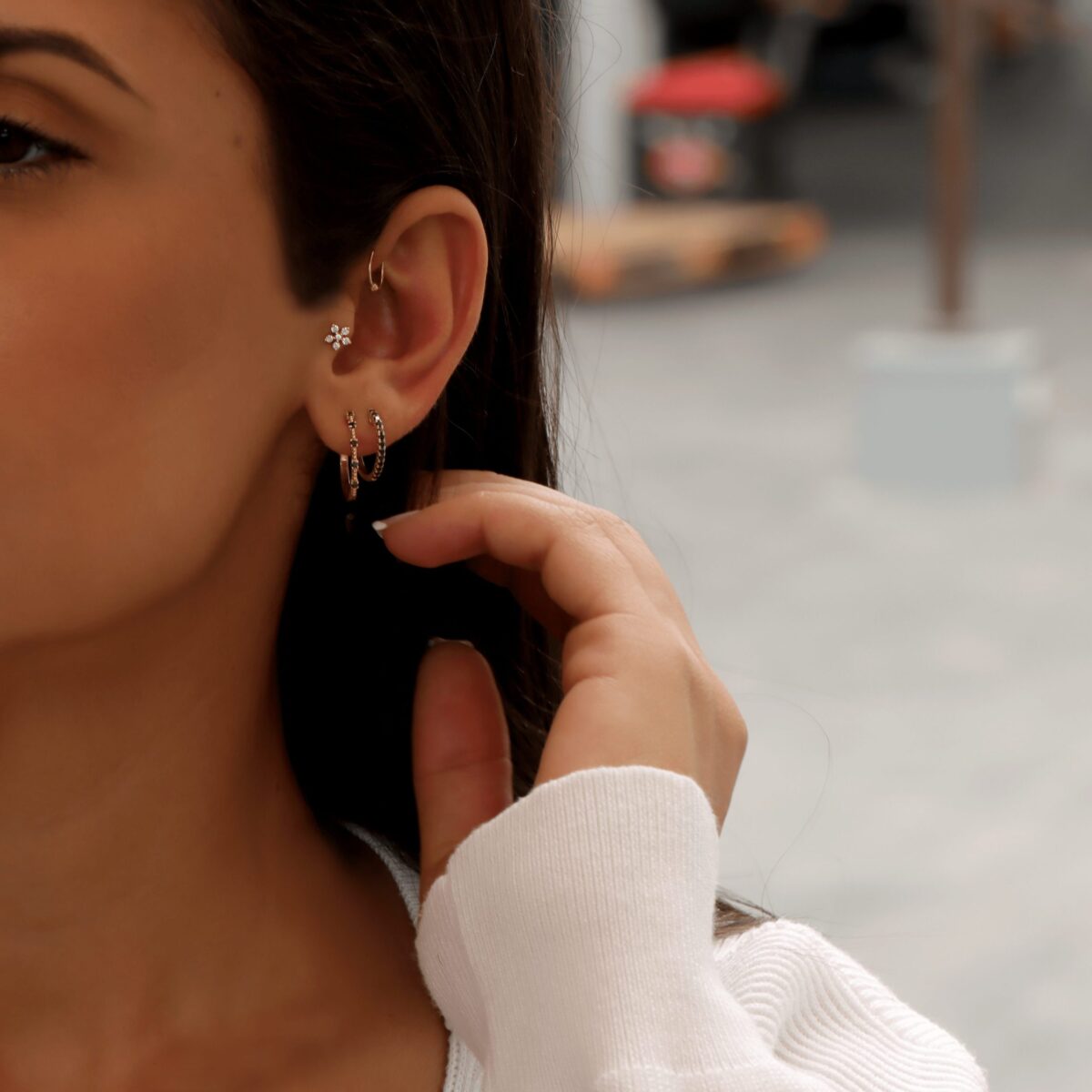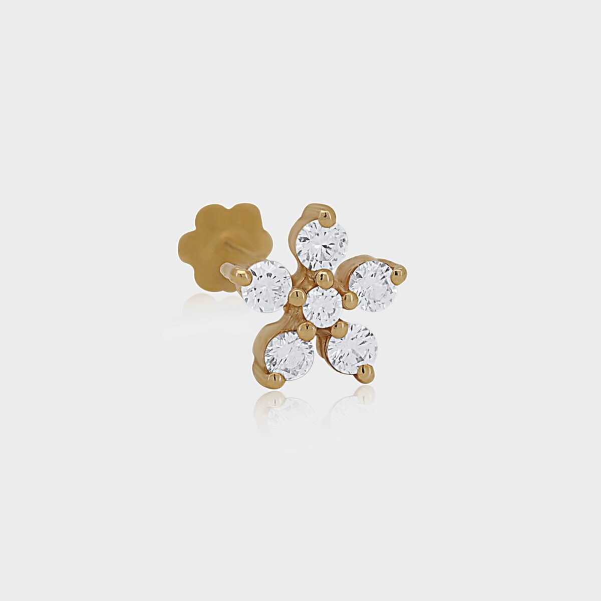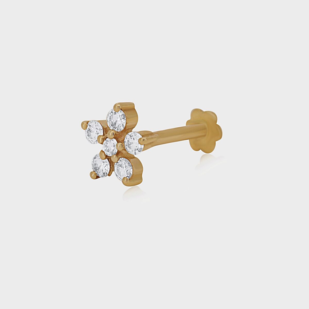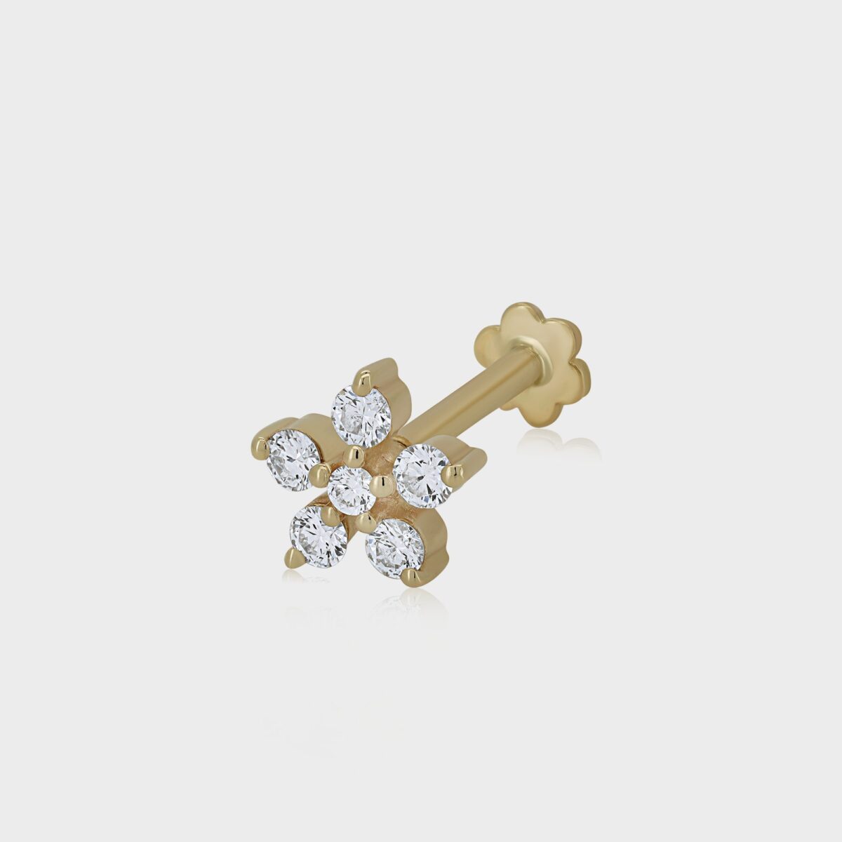 עגיל פירסינג פרח זהב ויהלומים