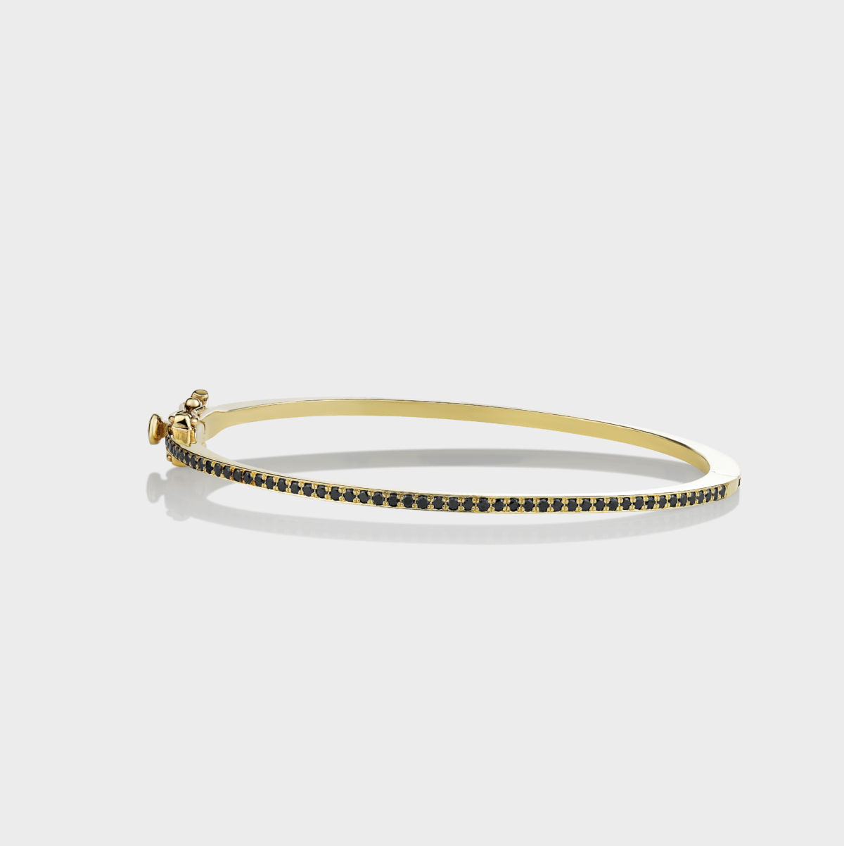 צמיד זהב בצורת אובל, עוטף את מפרק היד מעוצב ומציג שילוב מרשים של זהב צהוב ויהלומים שחורים. קולקצית Fancy Black נותנת במה יוקרתית למגוון עיצובים המבליטים את הקונטרסט היפיפיה שבין זהב ליהלומים שחורים ומציגה את החיבור המיוחד והשלם שבין שני הפכים.