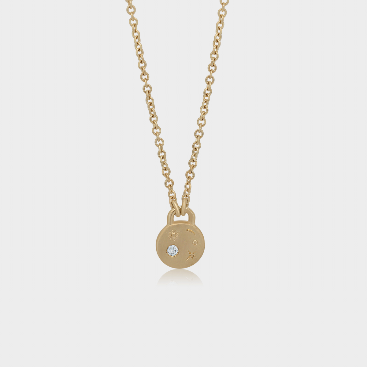שרשרת זהב משובצת יהלום המשלבת בין תכשיט לאמנות. מעוטרת בחריטות של גלקסיה הנעשות בעבודת יד.